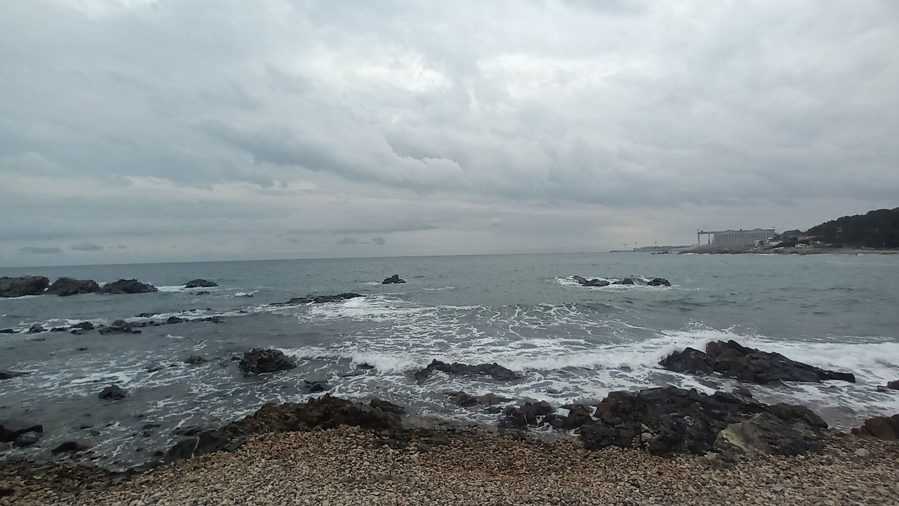 실제로 걸어보니 9코스는 긴 코스이지만 무난했다. 마음을 놓고 걷기 시작하면 어느덧 금방 도착을 할 수 있었다. 울산 12경 중 하나인 '주전몽돌해변'은 약간 흐린 날씨에도 멋져 보였다. 나는 사진을 찍거나 동영상으로 흐린 날씨 속 바다와 산의 자연스러운 만남을 남기기 시작했다. 마음에서부터 여유를 가지니 불안감이 어느덧 눈 녹듯이 사라지고, 생각 정리가 천천히 되어갔다. 어느 정도 마음은 깔끔한 상태로 유지가 된 채로 걷기가 가능해졌다. 그냥 머리가 서서히 비어 가는 상태로 걸어간다는 것. 머리가 복잡한 요즘 사람들에게 걷기 하나만으로 마음에 평화가 올 수 있다면 이 얼마나 좋은 일인가. 돈도 별로 들지 않고 말이다.