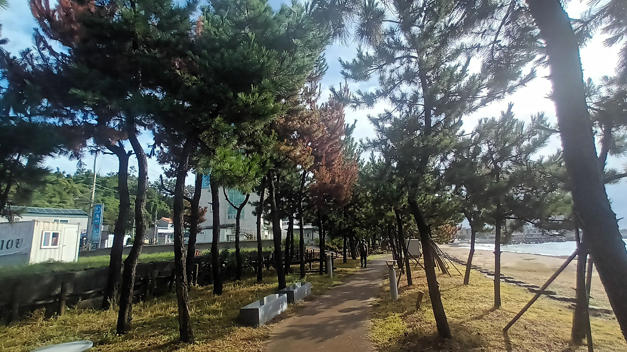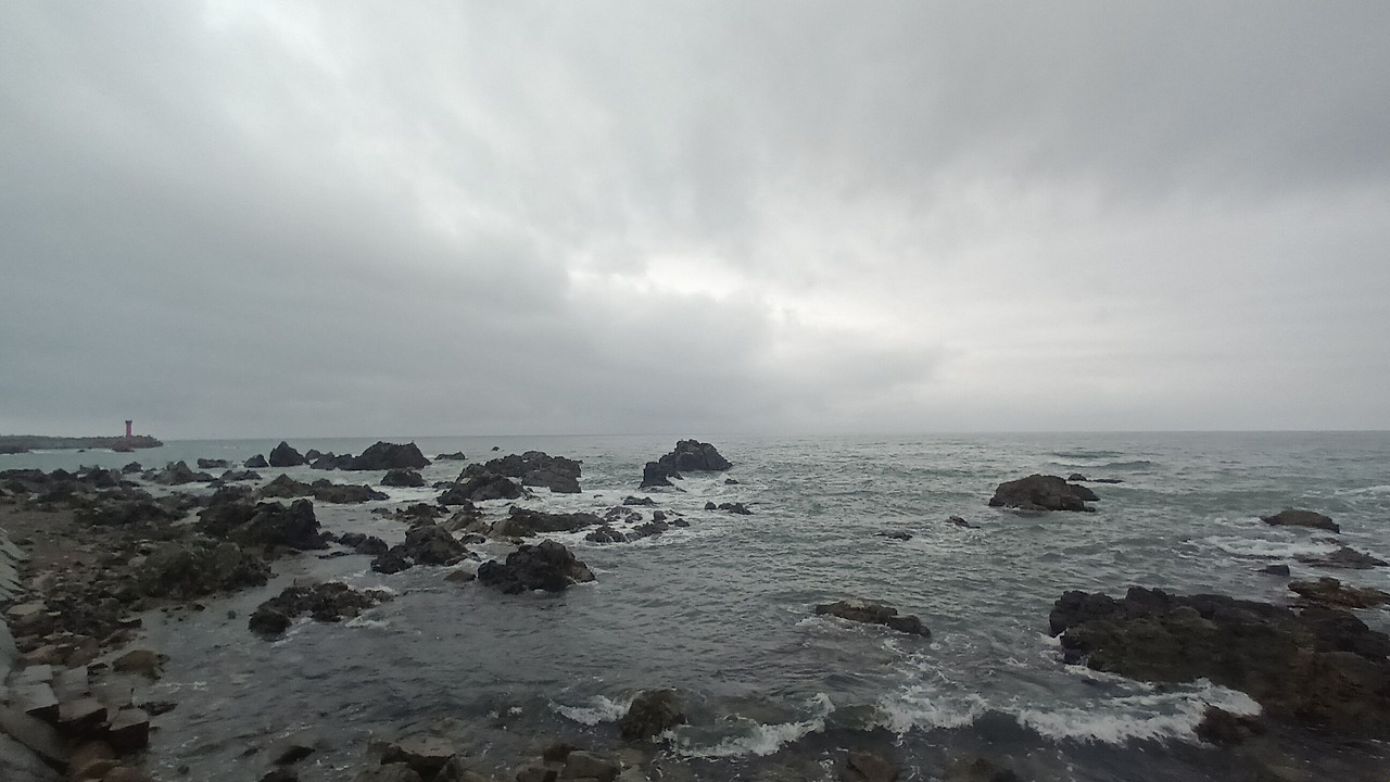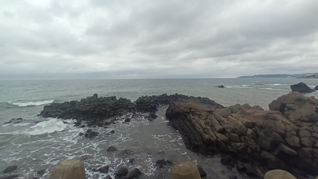 바닷길을 걷다 보면 똑같은 바다인 것 같은데도 표지판이나 방파제에 적혀 있는 바다 이름을 보면, 그 바다가 그 바다 같고 그 방파제가 그 방파제 같지만 이름이 하나같이 다르게 적혀 있다는 것을 발견하게 된다. 정자해변에서 걷기를 시작한 지 얼마 되지 않아서 '강동몽돌해변'을 지나가게 되었다. '강동화암주상절리'에서 잠시 멈추고 가족과 사진을 여러 번 찍고 또다시 걸어갔다. 쭉 가다 보니 '신명정자해변' 그리고 '신명해변'도 지나치게 되었다. 멈추지 않았다. 울산에서 벗어나서 경주로 바로 진입했다. 이제 울산시에서 경주시로 바뀐다. 계속 걷는다. 경주시에 진입해서 '지경리해변'을 쭉 따라 걷다 보면 '관성솔밭해변'이 나온다. 그다음 또 그다음 끊임없이 걷다 보면 바다 해변 이름이 매번 달라지는 것을 알 수 있다.