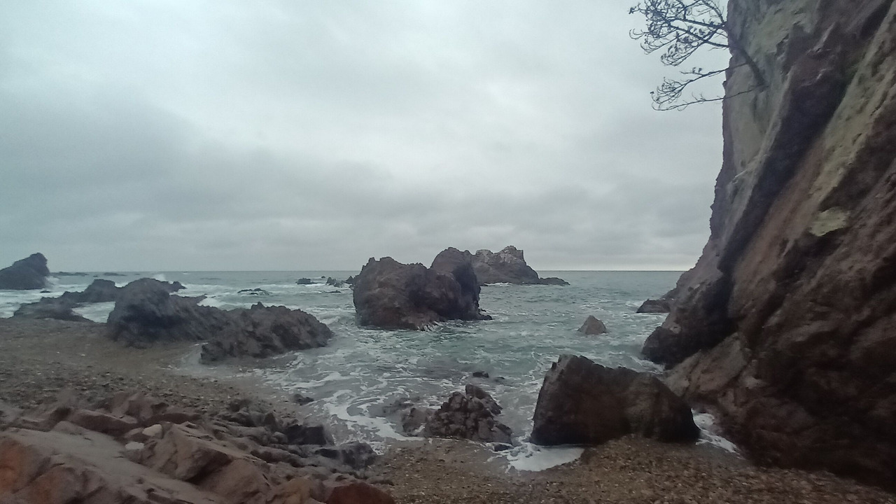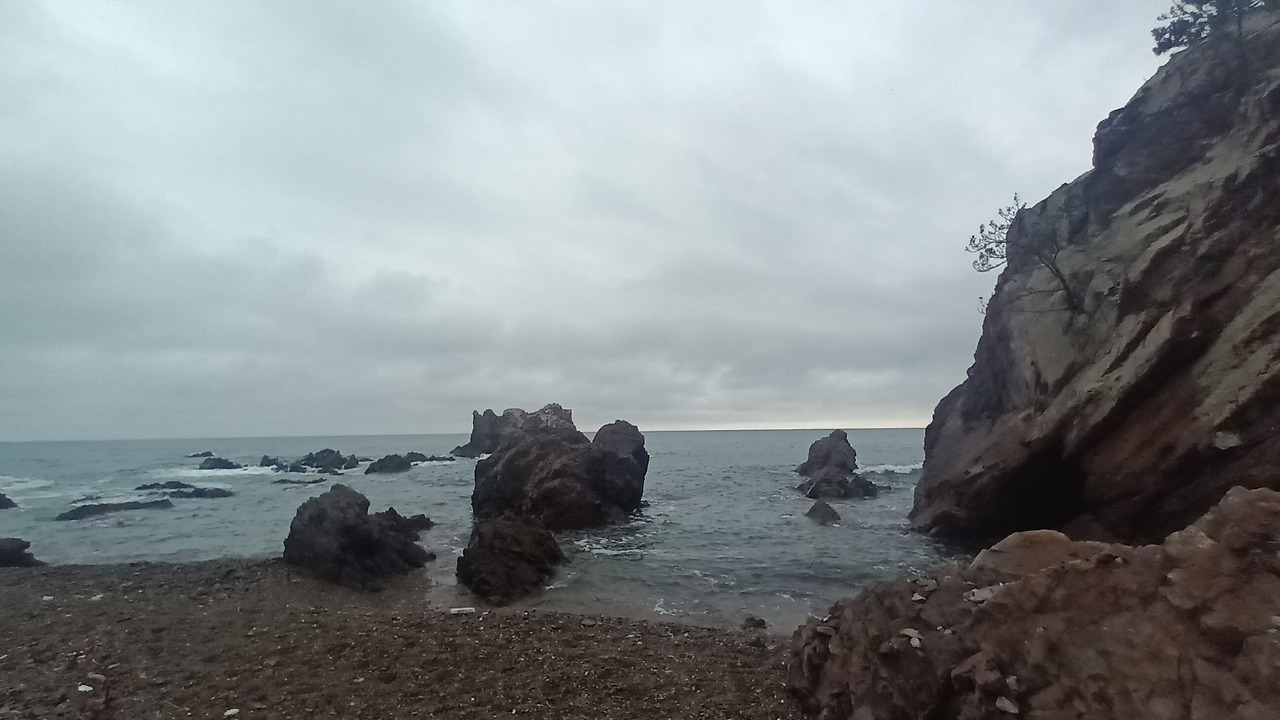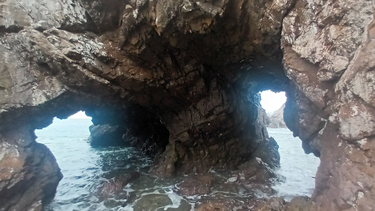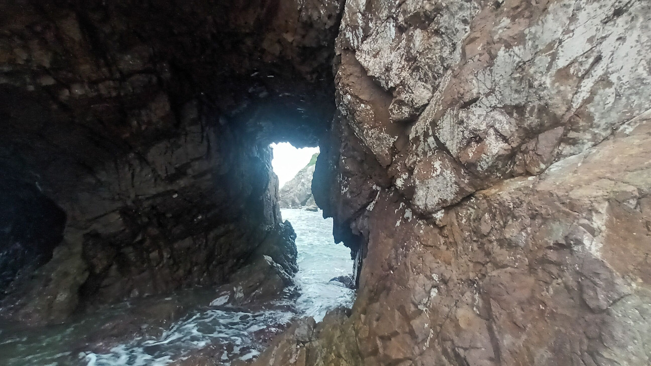 사람이 아무도 없는 적막 속, 비는 조금씩 왔다가 갑자기 많이 왔다가를 반복한다. 동굴에 파도가 부딪칠 때 철썩, 그리고 파도가 사라질 때 또다시 모든 것을 쓸어 담는 소리가 들린다. 저 멀리서 갈매기들이 울음소리를 내며 저마다 자신의 이야기를 하고 있다. 그들의 울음소리는 점점 더 커졌다가 갑자기 무엇인가가 나타나면 작아졌다가를 반복했다. 아마도 심하게 배가 고픈 걸지도 모르겠다. 빗소리와 함께 바람소리도 들린다. 바람이 우산이 날아갈 정도로 불고 있었다. 갑자기 날씨가 추워졌다는 느낌이 확 왔다. 가을이 다가오고 있는 건가.