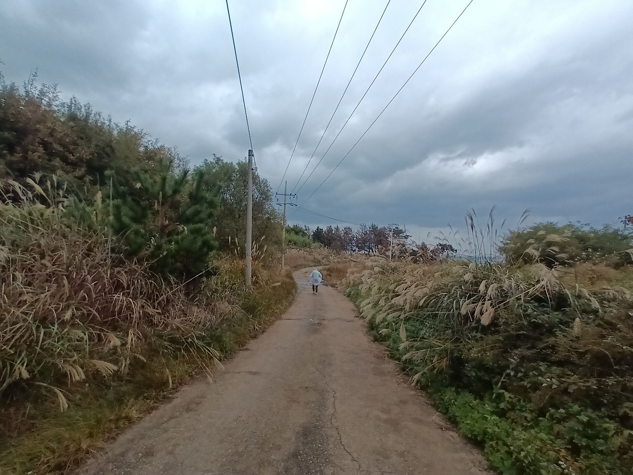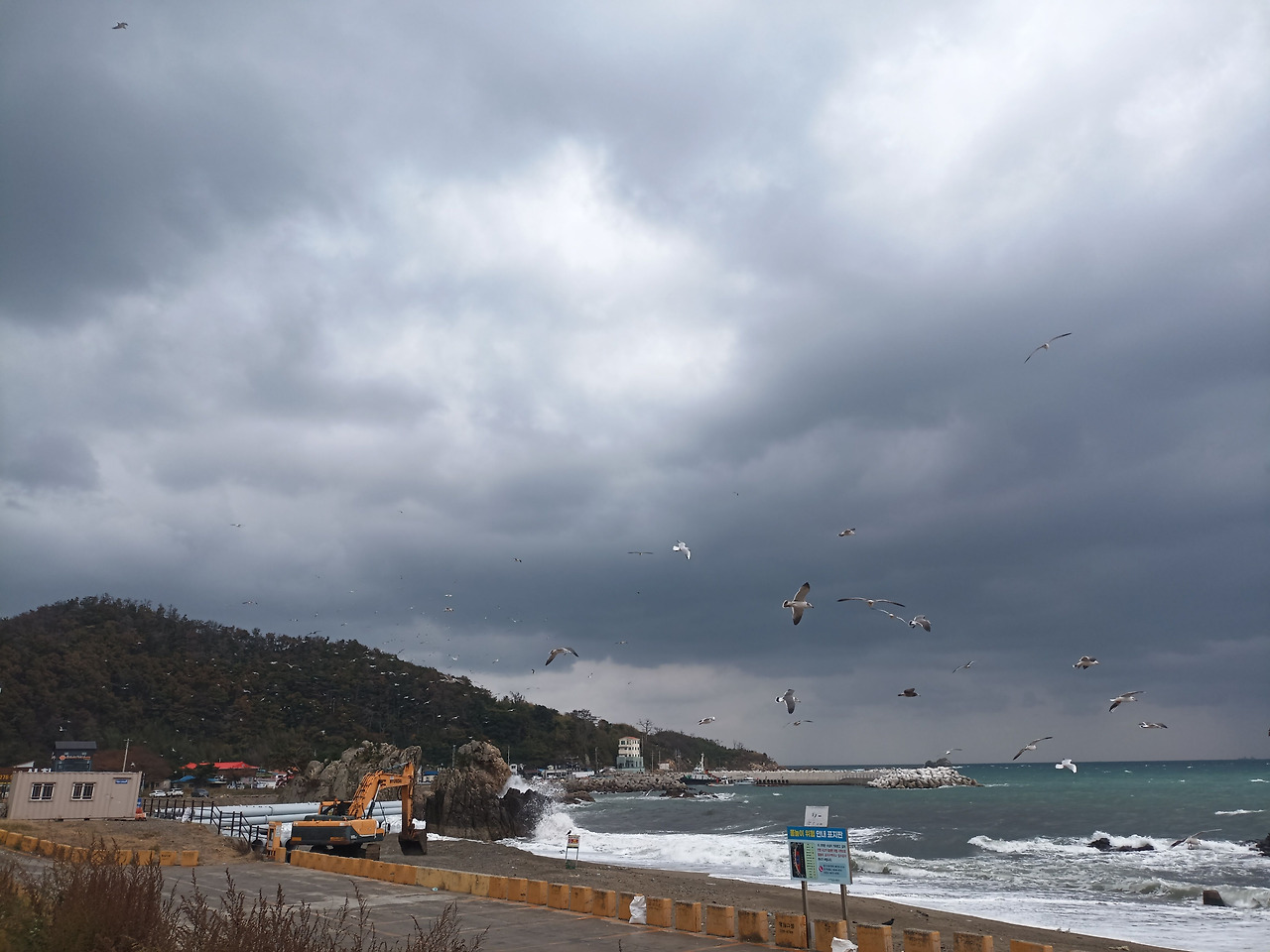 가끔은 '양포항'까지 가는 버스에서 보는 '알록달록한 단풍산'의 풍경을 보고 몸과 감정이 녹아내리는 듯했다. 그 풍경을 보고 있는 버스 안에는 바깥과 다르게 따뜻한 온도 덕분에 서서히 미소가 지어졌다. 하지만 양포항에서 내리고 걷기를 시작하면서 또다시 '감정기복'이 시작되었다. 그날은 이상하게 기분이 좋지 않고 체력이 약해진 상태였다. 나는 언제까지 감정의 들쑥날쑥함에 벗어날 수 있을까. 방금 전까지는 바람만 불었다면 걷기 시작하자마자 우중충한 회색빛 하늘에서 비가 조금씩 내리기 시작했다.