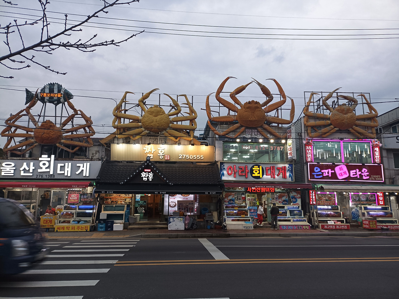 구룡포 근처에 위치한 13코스 종점인 '일본가옥거리'에 다다르자 휘황찬란한 홍게, 대게 맛집들이 줄지어서 우리를 반기고 있었다. 오후 5시 넘어서 종점에 다다를 때쯤 배가 슬슬 고프기 시작했다. 그렇게 13코스는 마무리되었다. 약 20km의 여정을 무사히 마쳤다. 몸은 무거운데 정신은 맑음으로 채워진 채로. 기분이 괜찮아지는 것을 느끼니 역시 인간은 감정의 동물인 것 같다는 생각이 들었다. 그리고 내가 꽤나 감성적인 사람이라는 것도 말이다.