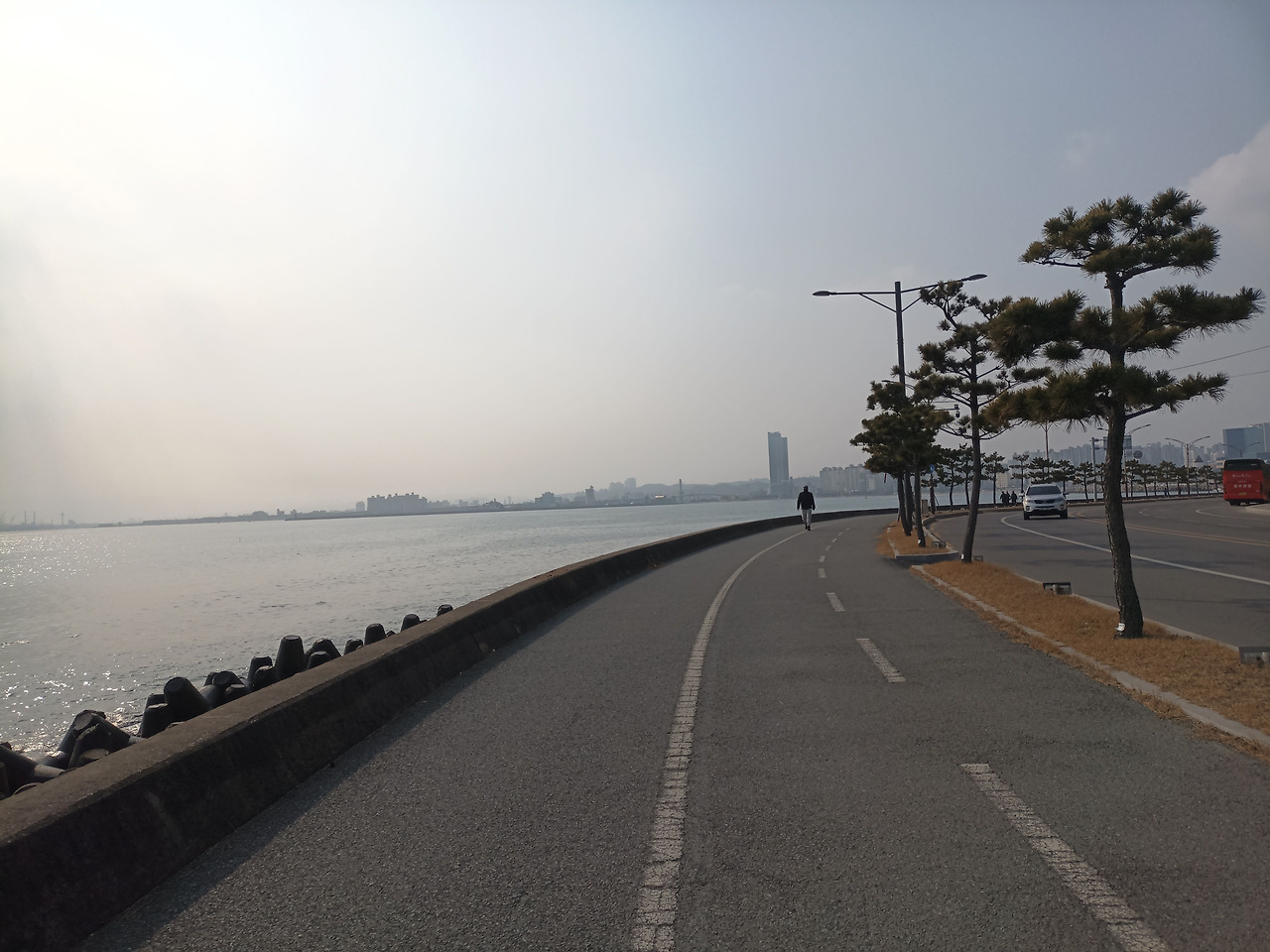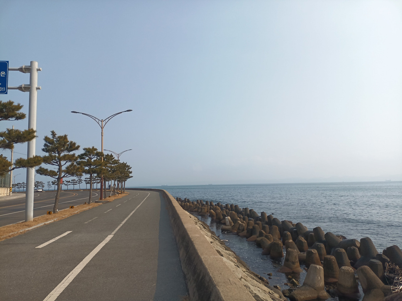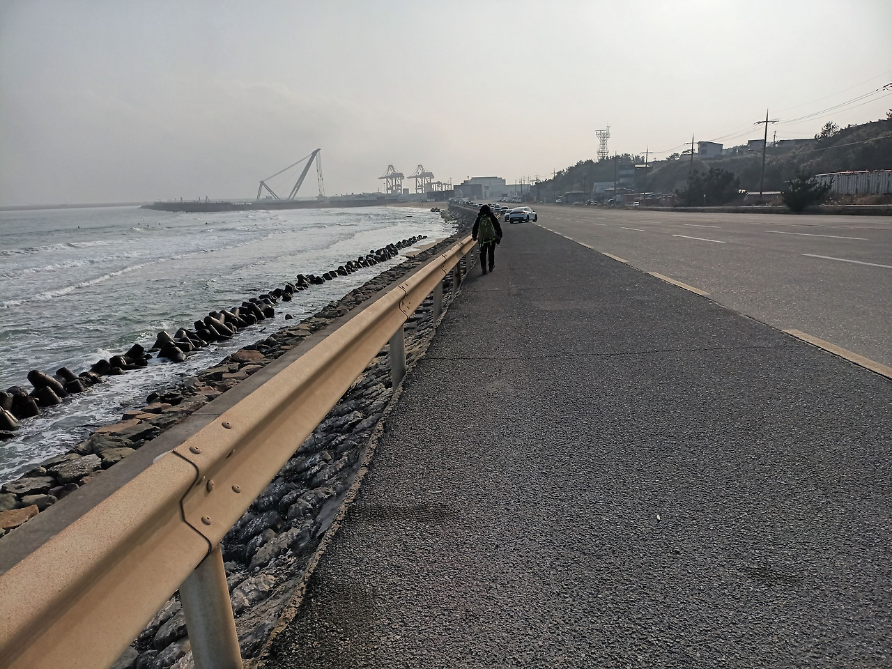 언젠가는 또다시 스멀스멀 내면의 불안은 찾아올 것이다. 시간이 얼마나 지났을까. 불안을 극복하고자 하고 그대로 마음을 두니 어느 정도 불안함에서 벗어났다. 그리고 나는 '포항여객선터미널' 옆에 도로길을 쭉 따라 걸었다. 이 정도 평탄한 길이라면 어깨도, 무릎도, 발목도 아프지 않은 최상의 컨디션의 길이라고 할 수 있다. 그날은 날씨도 따뜻했다. 이 따뜻한 하루에 나는 다시 세상에 감사함을 느꼈다.