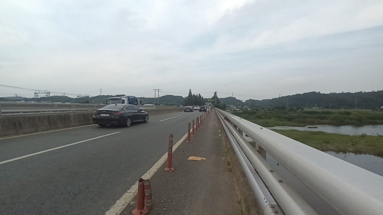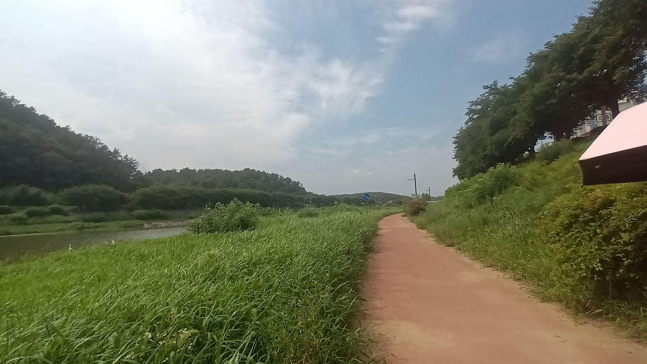 괜찮아. 물은 편의점이 있으면 사서 먹으면 된다. 하지만 오늘도 여전히 해파랑길은 엄마와 나만 걷고 있었고 아무도 없었다. 회야강을 지날 때는 아슬아슬하게 자동차가 지나다니는 갓길에서 외롭게 걷는 시간도 많았다. 중간중간에 쉬는 곳도 있었지만 뜨거운 열기로 모기, 날파리, 벌레들한테도 공격당하기 일쑤였다. 소규모의 공원 안에 쓰레기통도 없어서 그런지 바닥에 많이 버려져 있었다. 한숨이 나왔다. '오늘 해파랑길은 산이 없어서 괜찮은 줄 알았는데, 만만치 않네.' 기운이 서서히 없어졌을 때쯤 아파트와 빌라들이 보이기 시작했다.