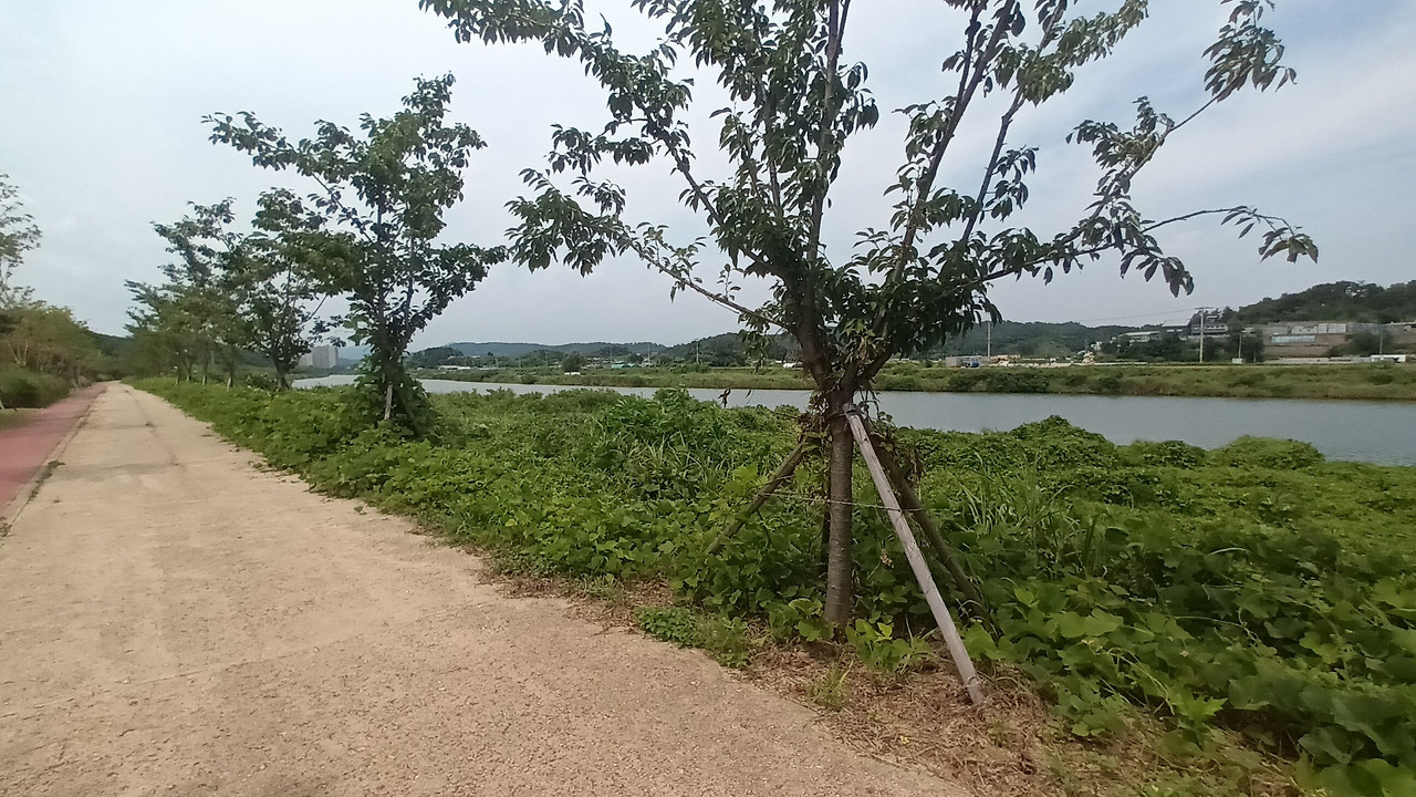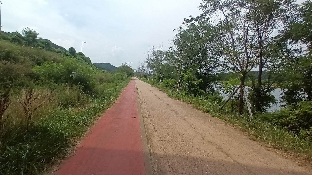 시간이 좀 지났다. 회야강이 쫙 펼쳐진 길이 나타났다. 회야강의 아름다움과 동시에 확 펼쳐진 길에 안도의 숨을 쉬었지만, 이상하게 더위가 아까부터 기승을 부리고 있다는 생각이 들었다. 나무나 숲이 전혀 없었기 때문에 시간이 지나면서 뜨거운 햇빛을 얼굴에 정통으로 맞으면서 걸어야 했다. 햇빛이 쨍쨍하면, 땀이 나고, 체력이 떨어지고, 정신이 흔들리기 시작했다. 그때 마침 생각나던 것이 있었다. 아, 이번 코스는 물 마실 음수대도, 화장실도 잘 없어서 힘들 수도 있다는 '두루누비 앱 안의 5코스 후기'가 떠올랐다. 코스를 하나씩 끝나면 사람들이 '후기'를 종종 올리는데 그때 적어놓은 후기를 몇 개 정도 읽고 가는 것이 습관이 되었다. 근데 갑자기 그 후기가 확 떠올랐고 이어 머릿속에 맴돌고 있었다.