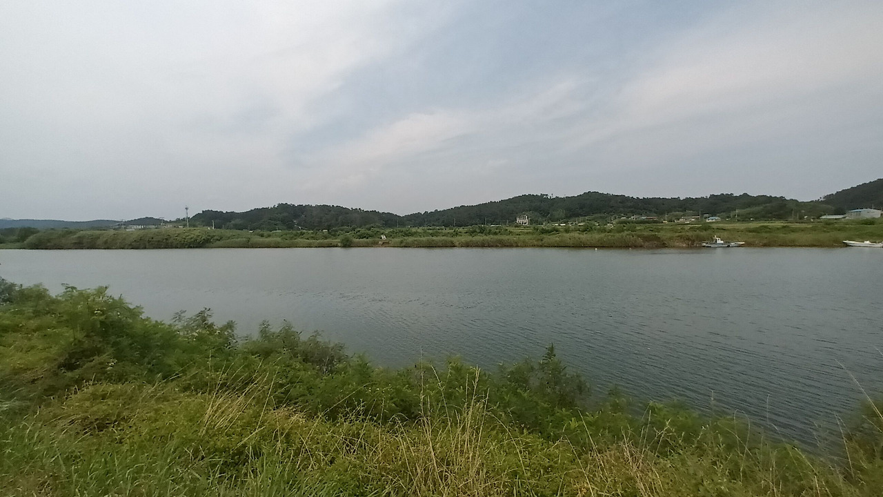 5코스는 진하해변에서 출발하여 덕하역까지의 구간이며, 해파랑길에서 울산 구간이 시작되는 코스이다. 그런데 이번에는 바닷길을 따라가기보다는 '회야강'이라는 아름답고 큰 강을 옆에 끼고 나란히 이어지는 길이다. 우리 집 앞에도 회야강처럼 작은 강이 하나 있는데 강 옆에 뛰거나, 걷는 길, 또는 자전거길이 잘 조성되어 있다. '산책 가듯이 가면 좋겠다'라는 생각이 드니 집에서 출발지점까지 편한 마음이었다. 날이 어마무시하게 뜨거운 8월 초였어도 8일 그날은 살짝 흐릿한 날이라 날씨도 걷기에도 딱 적당했다.