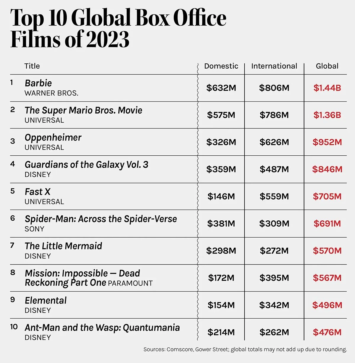 이 시대의 가장 민감한 주제를 다뤘음에도 <바비>는 올해 박스오피스 1위에 안착, 그리고 워너 브라더스 역사상 최고 수익을 올렸습니다. <오펜하이머>는 세시간 짜리 R등급(19금) 전기 영화라는 악조건 속에서도 9억 5200만불이라는 <조커> 다음으로 가장 높은 수익을 기록한 R등급 영화로 등극했습니다.