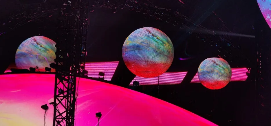 곧이어 콜드플레이가 만든 외계 인형 밴드인 위어도스(Weirdos)가 "Human Heart" 무대를 펼치고, "긍지의 사람들"(People of the Pride)에게 힘을 실어주는 강렬한 무대에 이어 "Clocks"의 화려한 초록색 레이저쇼가 펼쳐집니다. 이어서 엘리야나와 트와이스와 함께 "We Pray"를 부르고, 또 다른 떼창 유발곡 "Something Just Like This"과 마틴 개릭스의 사운드를 리믹스해 운동장 전체를 대형 클럽으로 만들어버리죠.