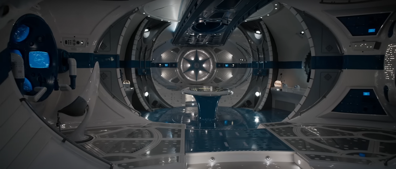 그리고 단연 돋보이는 것은 프로덕션 디자인입니다. <로키> 시리즈와 동일한 미술감독인 만큼 TVA와 비슷한 느낌이 있는데, 이 영화의 레트로퓨처리즘 컨셉과 너무나도 잘 맞아 떨어집니다. 최근 '더 볼륨'에 과하게 집착하는 추세를 거스르고 세밀하게 창조해낸 실제 세트에서 촬영된 장면들은 영화에 새로운 생명력을 불어 넣습니다.