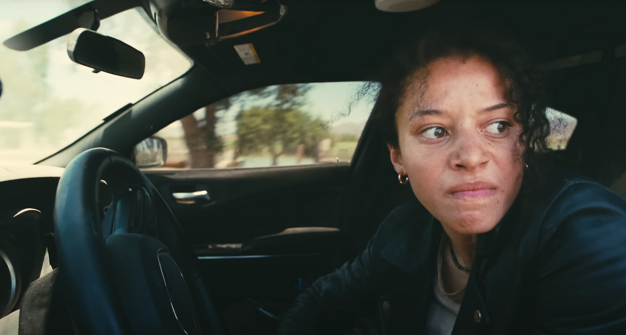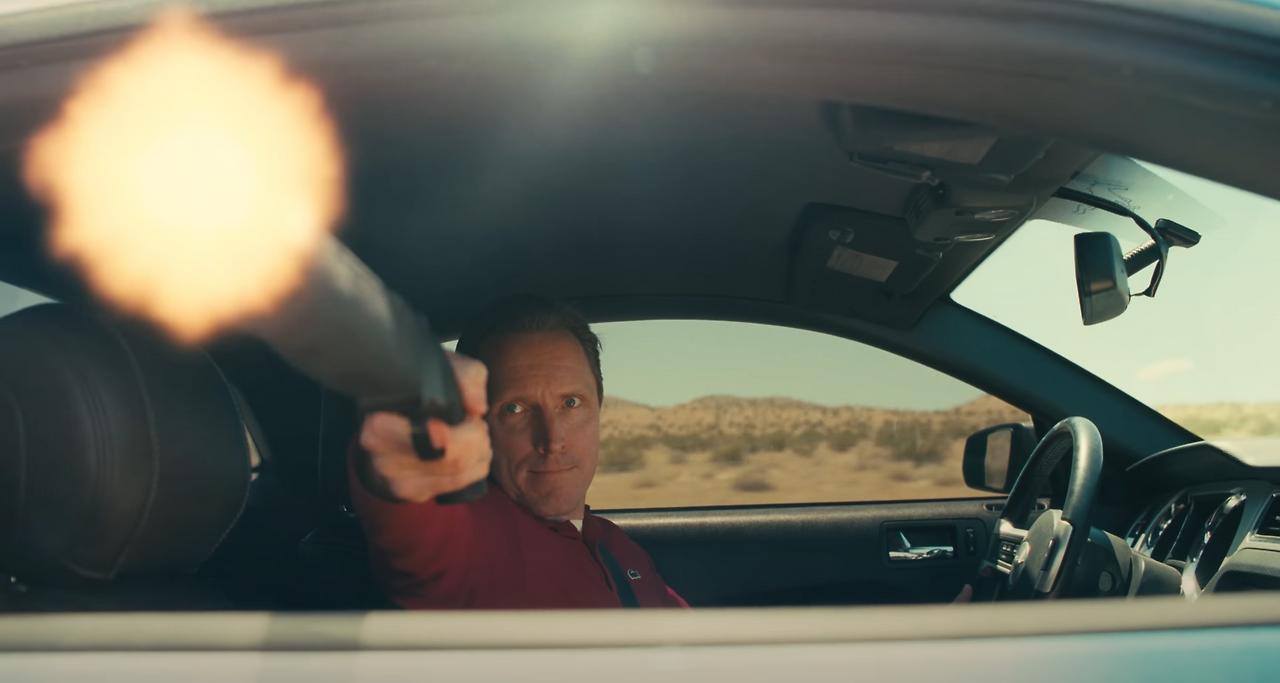 그가 쫓는 두 인물 역시 미국 사회의 기형적 산물입니다. 인디언 혈통의 용병 '아반티 Q'는 하얀 닷지를 몰고, 백인우월주의 단체의 일원인 '팀'은 파란색 머스탱을 운전합니다. 두 차량 모두 미국의 '마초'를 상징하는 대표적인 머슬카들로, 근육질의 차체와 성조기의 색을 입은 외피는 그들이 믿는 힘과 지배의 신화를 그대로 반영하며, 마치 '진짜 미국인'은 누구인가에 대한 일종의 기싸움처럼 보이기도 합니다.
