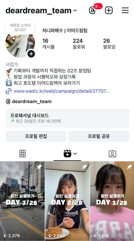 A. 콘텐츠는 제가 하고 싶은 대로 여러 주제로 담아 봤는데 유튜브를 완벽하게 시작하고자 계획을 세웠다기보다는 '미뤄왔던 도전을 실행해 보자!' 이런 느낌이었어요. 편집도 무료툴이고, 편집 형식도 매번 다 달라지고. 주제는 이어드림 서비스를 준비하는 과정이라던가 되게 다양했어요. 시작이 반이라는 말이 있잖아요. 그래서 일단 시작한 거예요. 28일 챌린지에 성공했을 때는 진짜 뿌듯했어요. 예상하지 못했는데 응원해 주시는 분들도 생겨서 진짜 감사했고요.