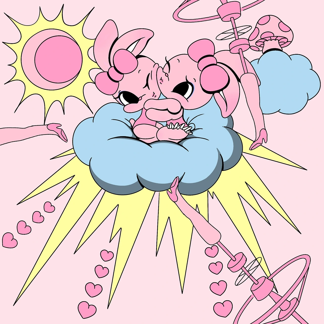 분홍빛 세상 한가운데, 두 존재가 서로를 끌어앉고 있다. 주변에선 정체 모를 다리들이 사방에서 뻗어 들어온다. 할퀴려는 것처럼, 끌어내리려는 것처럼. 세상의 온갖 부정성, 끊임없이 쏟아지는 나쁜 뉴스들, 우리를 지치게 만드는 것들. 그것들을 그 다리들로 표현하고 싶었다.