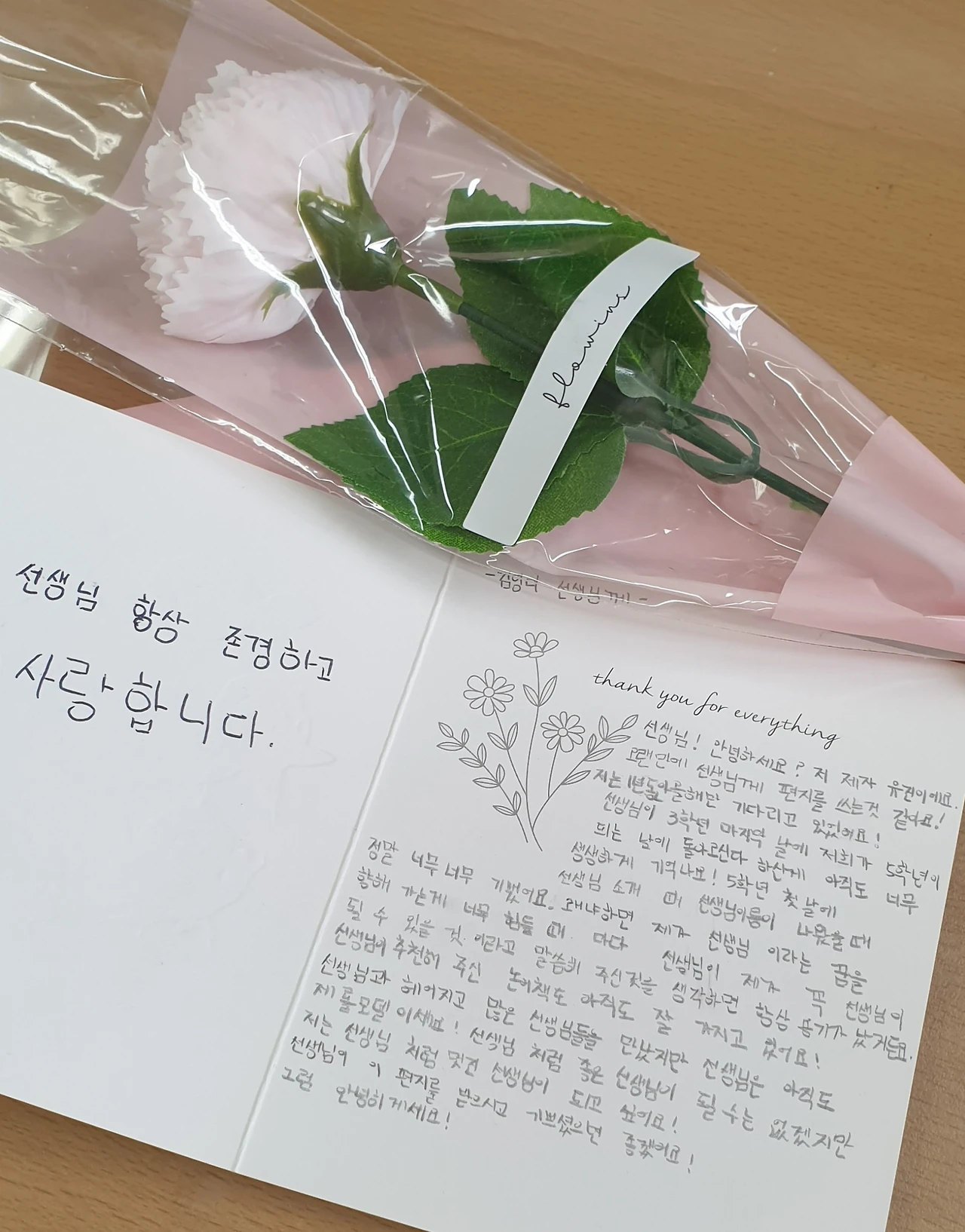 선생님이 이 편지를 받으시고 기쁘셨으면 좋겠어요!