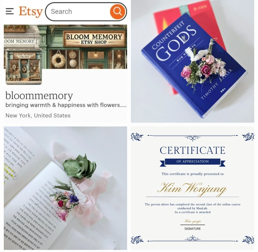 엣시에 꽃으로 만든 모든 소품을 파는 온라인 샵을 열고, 온라인 북클럽 팀장에도 도전하셨다기에 마음속으로 삼삼칠 박수를 보내드렸습니다.