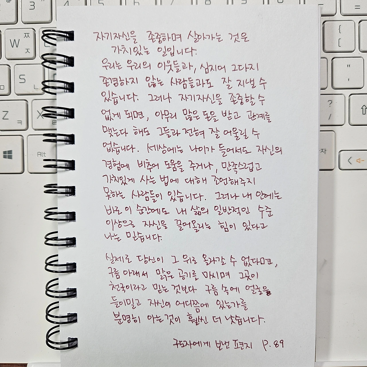 나를 사랑하지 않는 마음으로는 누구도 진정으로 마음으로 들일 수 없음을 조금씩 알아가고 있습니다.