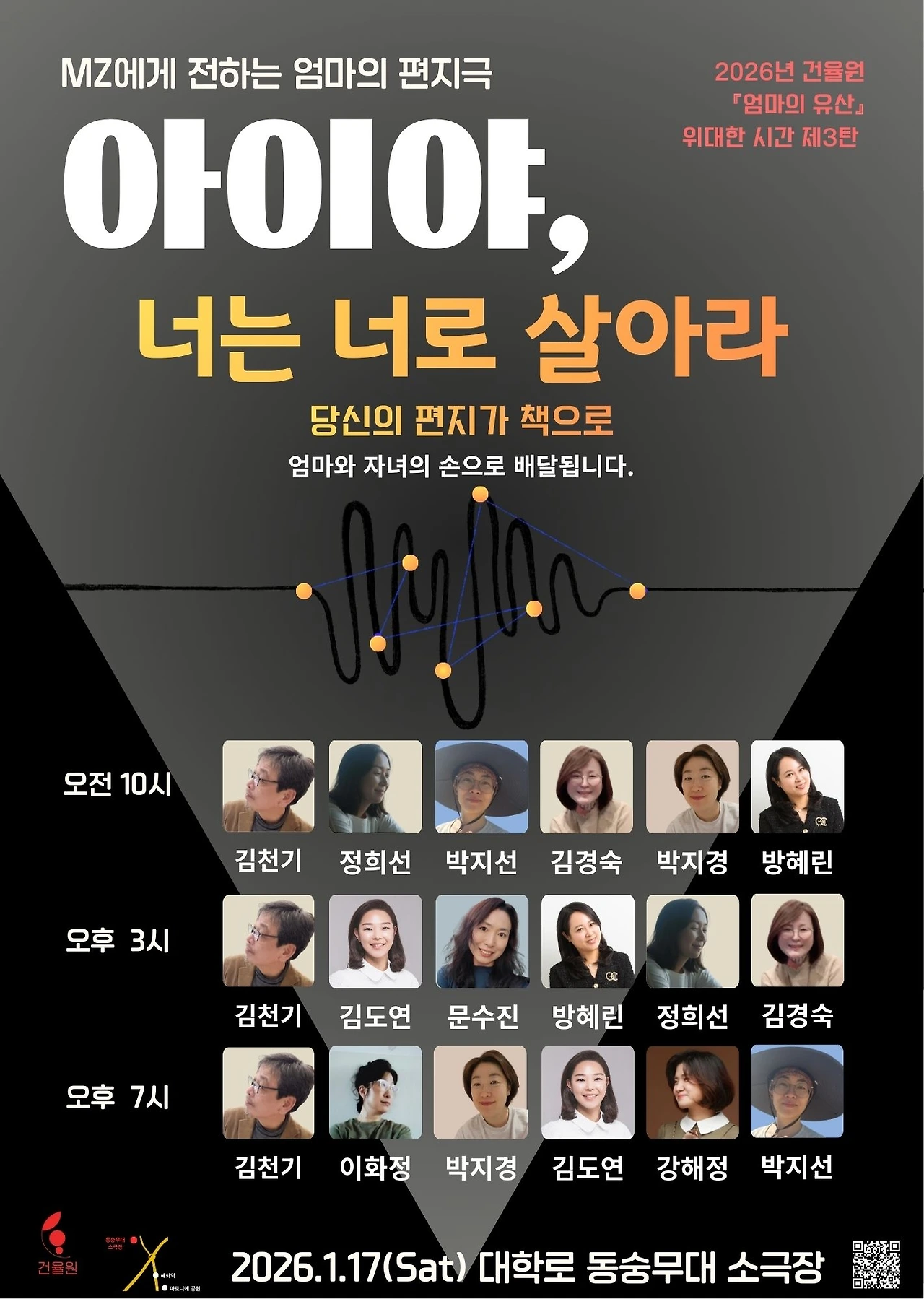 갑자기 무슨 낭독극이냐고 물으면 엄마도 갑자기 받아 든 일이라 잘 몰라. 하나 확실한 건, 엄마도 너희들도 인지하지 못하는 시간에 고치를 뚫고 엄마 자신으로 탈피하고 있다는 거야.