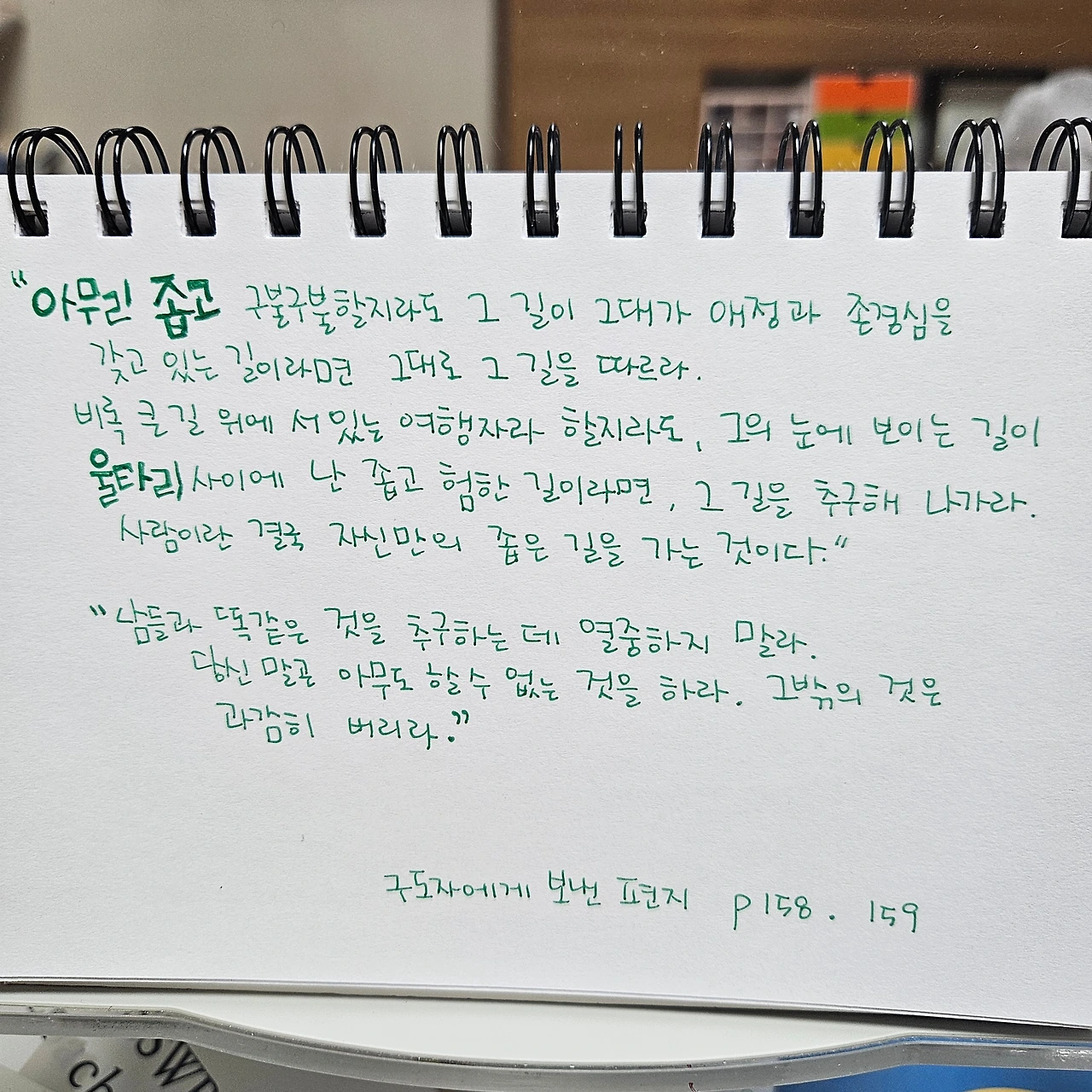 좁고 구불구불한 길을 두려워하지 않는 비결은 그 길의 가치를 알고 가는 것이다.