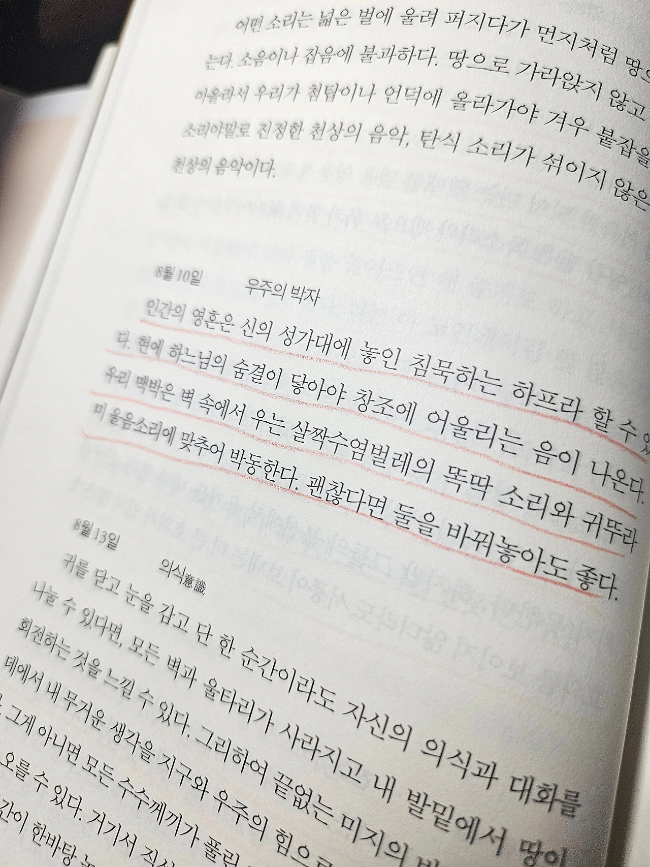 영혼을 반짝이게 하는 동력은 어떤 대상을 사랑하는 일이다. 하느님의 숨결이 닿아야 창조에 어울리는 음이 나온다는 소로의 말은 예술처럼 진실이며 그 숨결은 넘쳐흐르는 빛과 사랑의 현존