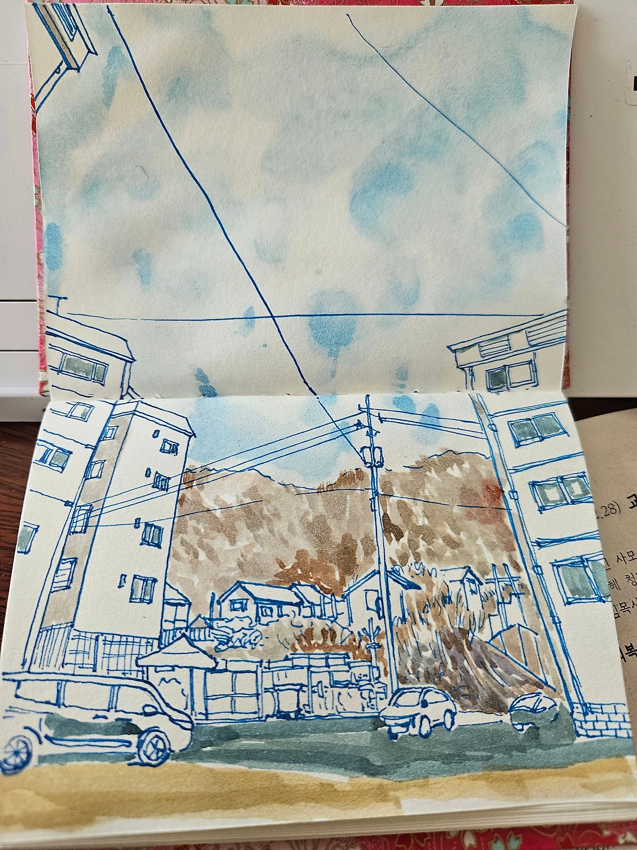 어반 스케쳐들이 야외에 나가서 자유롭게 스케치를 하고 슥슥 색을 입히는 것을 흉내 냈다.