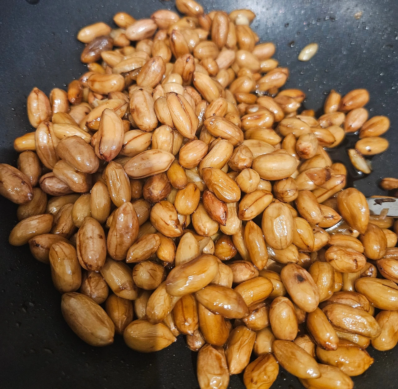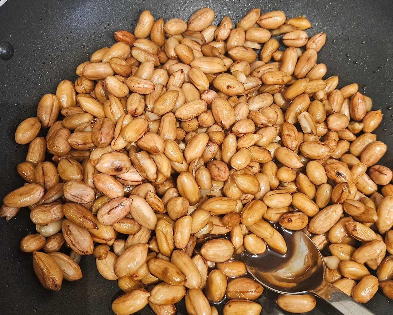 땅콩을 맑은 물에 씻어 끓는 물에 데쳐낸 뒤 간장을 붓고 자작하게 졸였다.