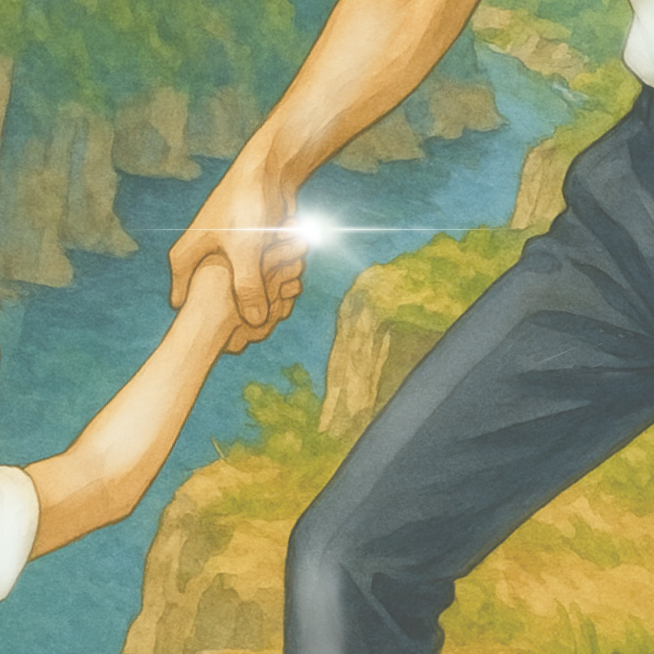 마침내 혜윤이 절벽 위로 굴러들어 오듯 올라오자, 두 사람은 거친 숨을 몰아쉬었다.