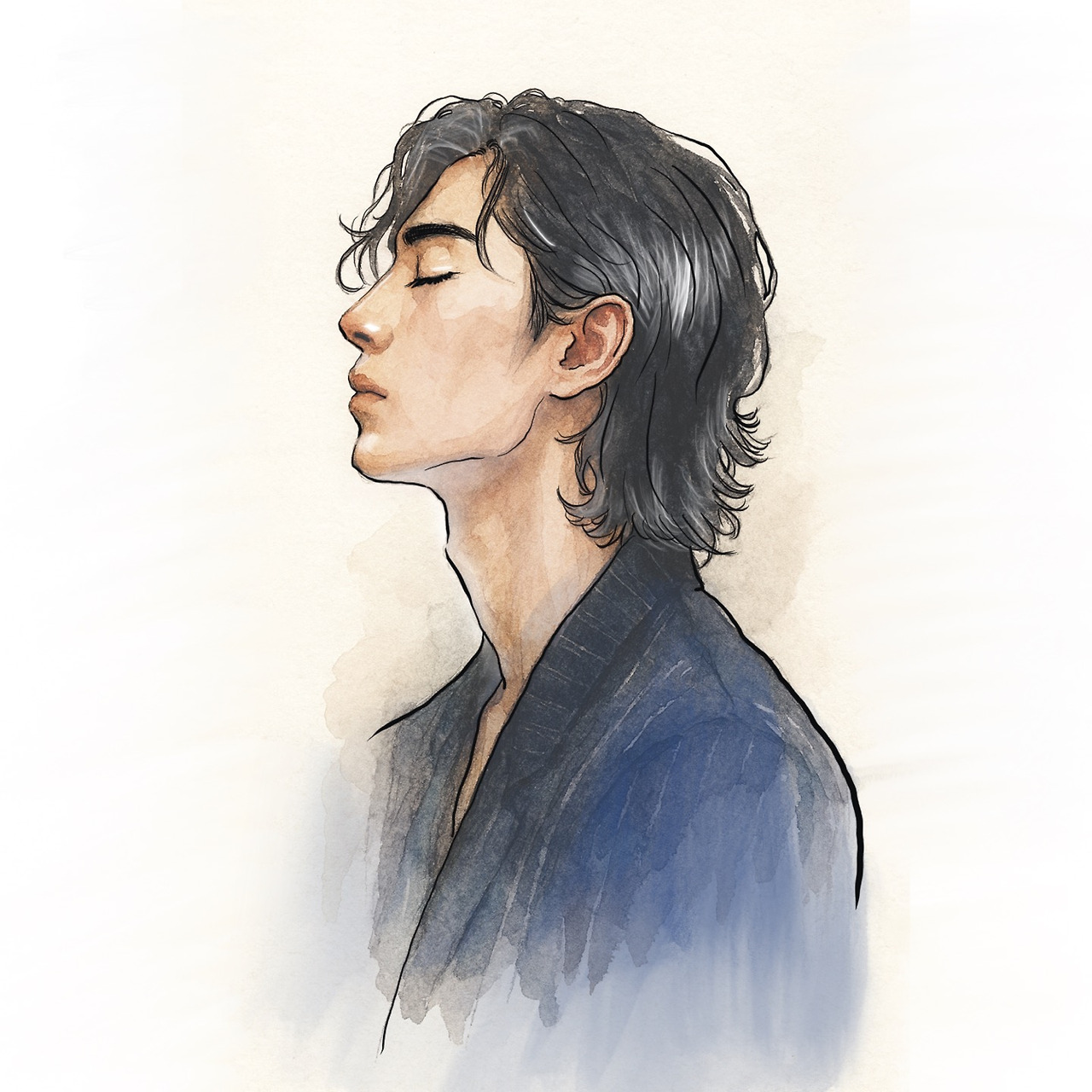 마소야는 검은 머리를 늘어뜨린 채, 자세를 곧게 하고 시선을 정면에 고정했다.
