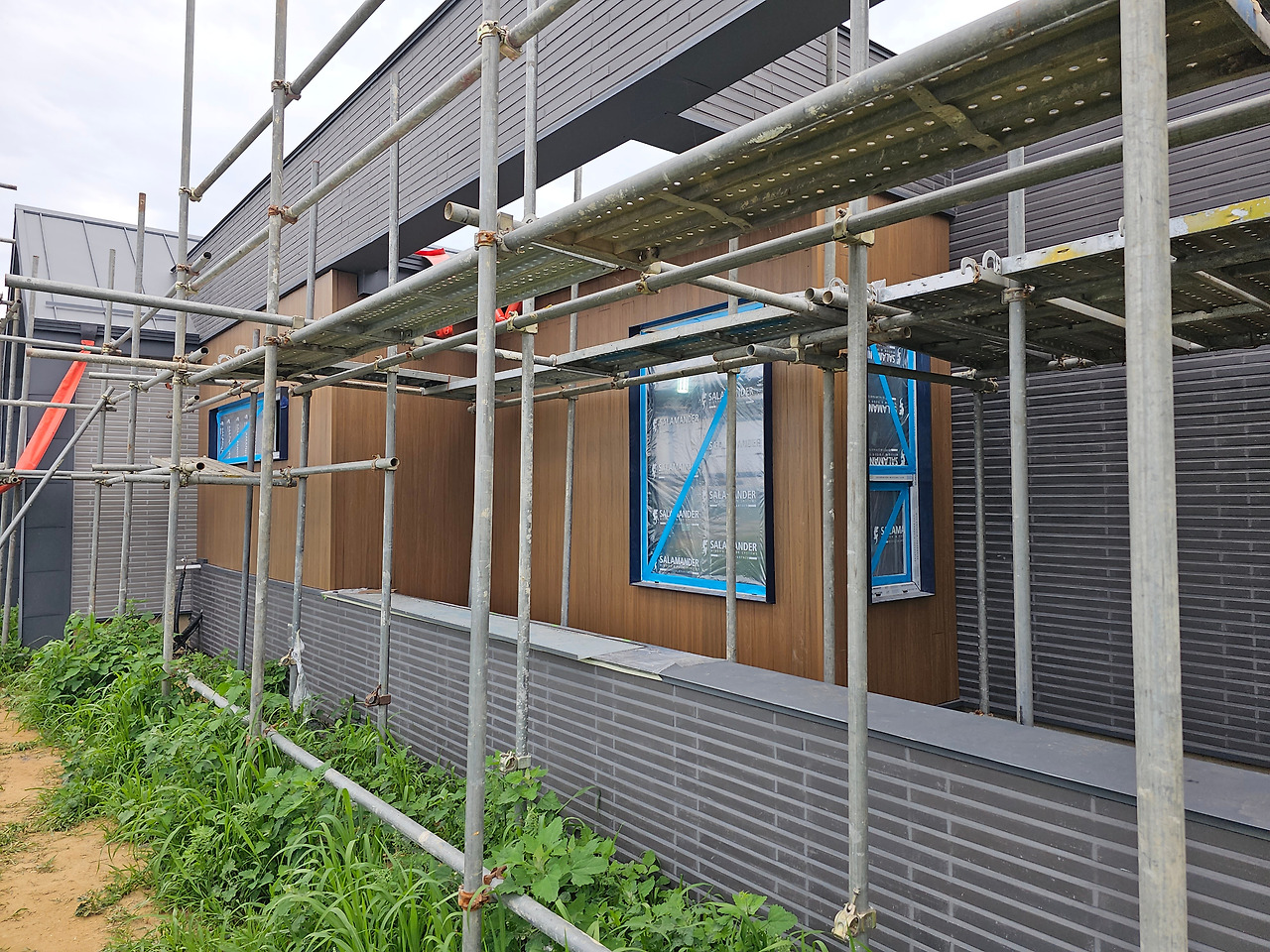 비계발판 없이는 작업이 불가능하다. 이렇게 작업을 해놓으면 평균높이 4m 이상에서 매달려 작업하는 목수들이 안전하고 작업속력도 빠르다. "꾸벅 감사합니다 비계공 여러분"
