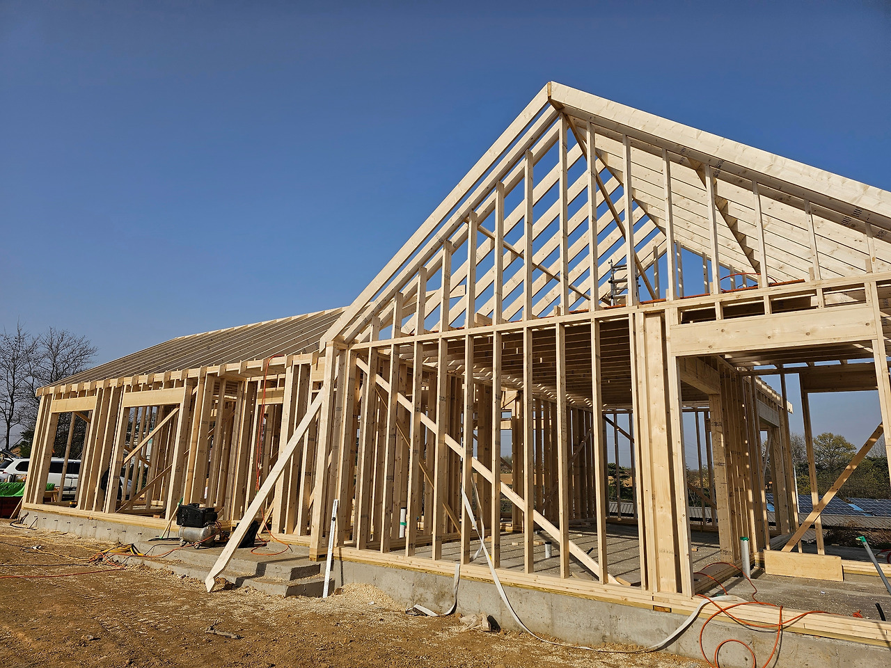 합판시공을 하고 있다. 합판을 그냥 합판으로 여기고 무시하는 분들이 있는데 합판도 구조제이다. 이것이 구조 등급에 맞지 않는 것으로 시공되면 안 된다. 명심하기 바란다.