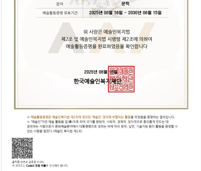 인정받는 예술인 증명의 길로