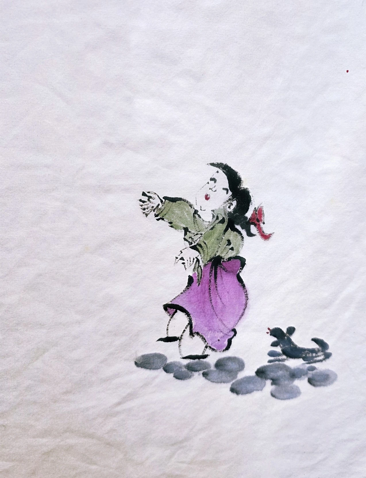 없었는데 하얀 천위에 올려진 티브이 다이