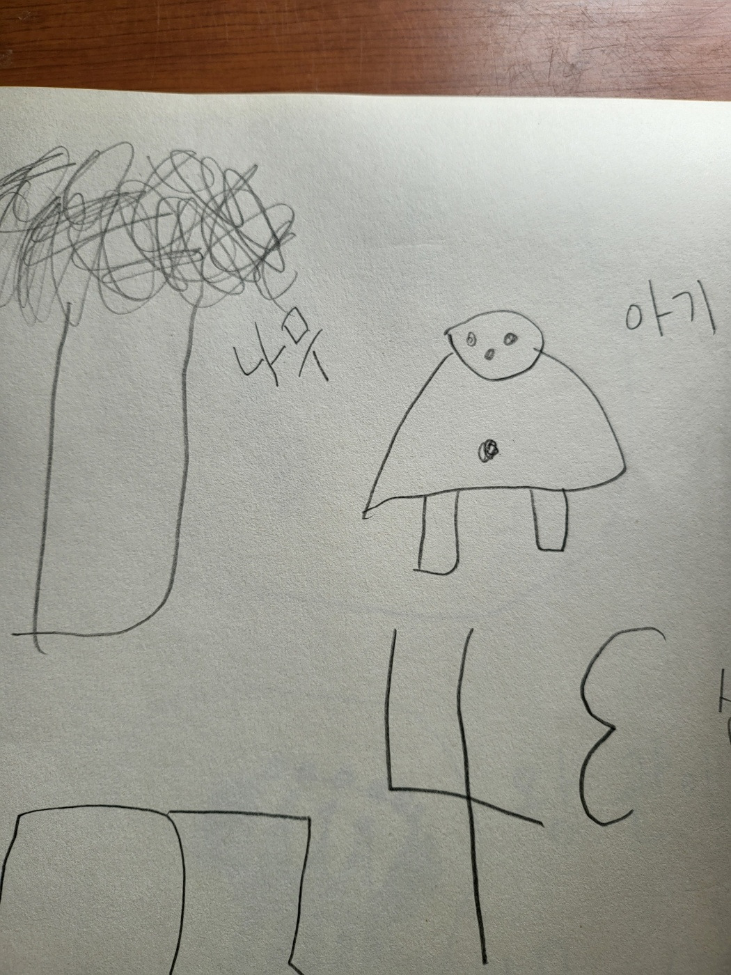 '나무'라고 그림 한편에 글씨를 써준다.