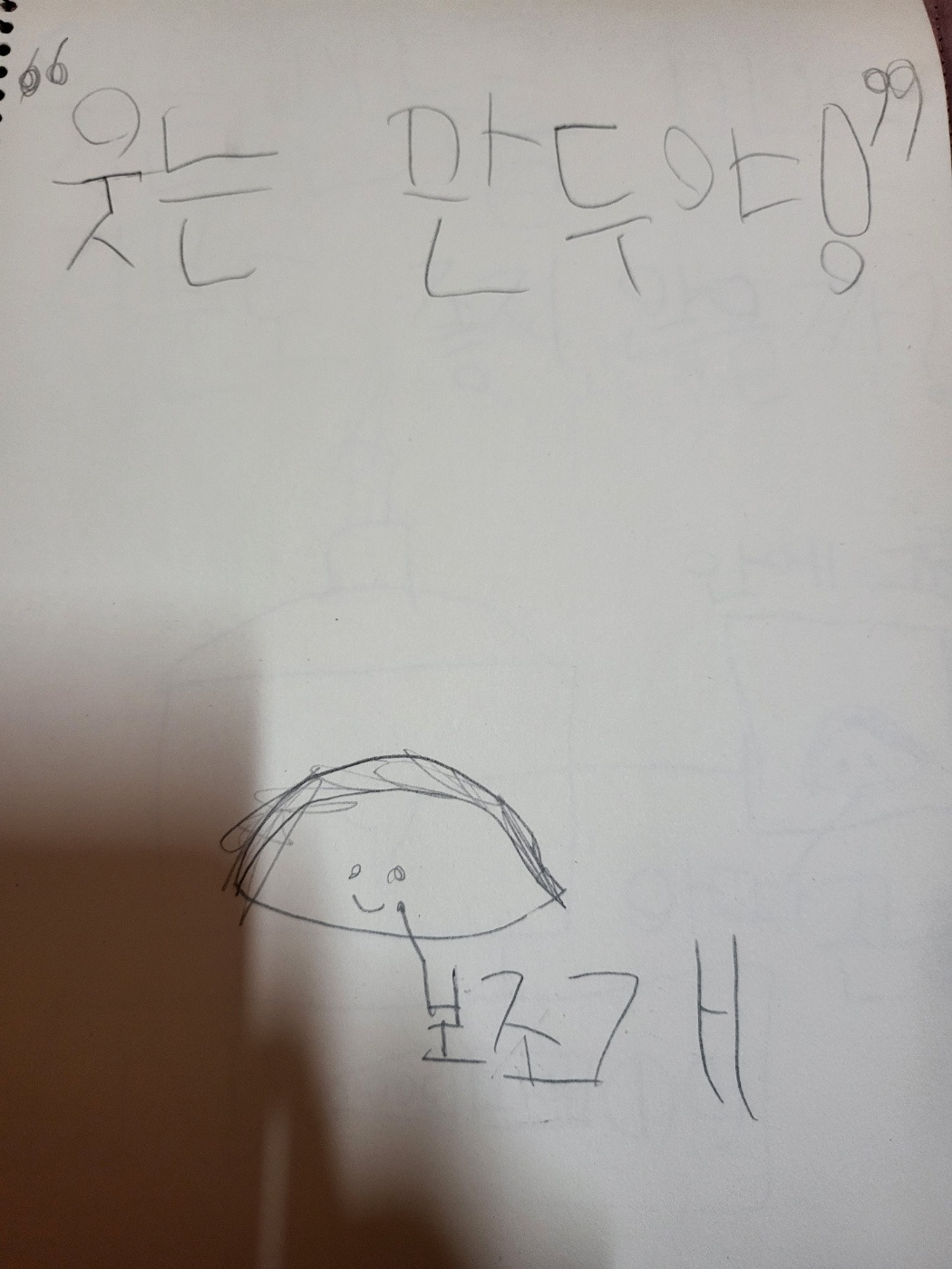 다음날, 스케치북을 펼치고 우리는 각자 그림책 제목 ‘웃는 만두’를 위에다가 큼지막하게 쓰고, 그 아래 날짜와 이름을 적었다. 이제 첫 장을 그릴 차례.