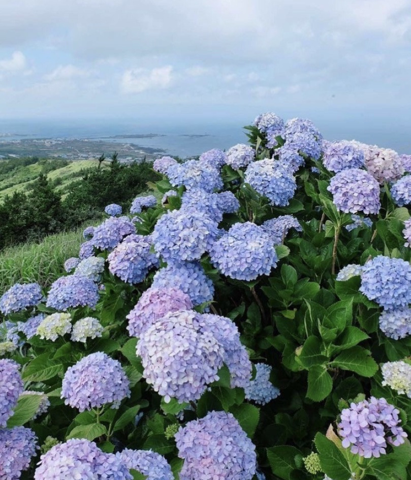 도열한 수국들은 군락별로 뚜렷한 색의 경계를 보여주었다. 나는 수국 밭 한가운데로 뛰어들어 제주의 푸른 바다를 닮은 파란색의 수국 사이를 헤엄치고, 한라산의 노을을 닮은 진분홍의 수국 틈새를 오르내렸다.