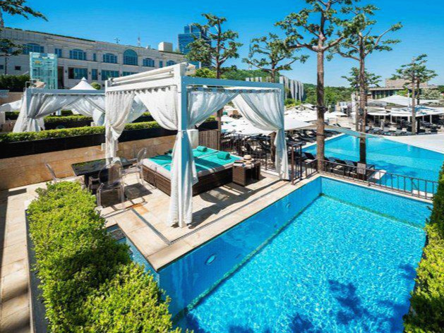 반얀트리 클럽 앤 스파 서울의 오아시스 야외 수영장은 대표적인 럭셔리 호텔 수영장입니다. 남산 자락에 위치하여 도심 속에서도 자연을 느낄 수 있는 휴식처인데요. 23개의 카바나와 개인 풀이 마련되어 있어 더욱 프라이빗 한 시간을 보낼 수 있죠. 오아시스 수영장은 회원, 투숙객 및 카바나 이용객들만이 입장할 수 있는데요. 성수기 입장 요금은 주중 10만 원, 주말 및 공휴일 14만 원입니다.