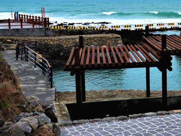 서귀포시 하예동의 '논짓물'은 용천수가 바다로 흘러나가며 바닷물과 민물이 만나 만들어진 천연 해수욕장입니다. 둑을 막아 풀장과 샤워장을 만들어 여름이면 많은 피서객들이 몰리는 곳인데요. 이곳은 하예 마을회 및 청년회에서 관리하는 유원지로 이용 요금이 있습니다. 바닥에 돌이 있어 아쿠아슈즈를 챙기는 걸 추천합니다.