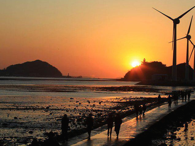 '탄도항'은 일몰이 아름답기로 유명한 장소입니다. 대부도 여행 중이라면 일몰 감상을 위해 방문해야 할 필수 코스이기도 하죠. 탄도항은 풍력발전기가 위치해있어 해가 질 무렵 한층 더 고조된 분위기를 자아내곤 하죠. 바닷길이 열릴 때 누에섬 등대 전망대에서 탄도항의 풍경을 감상할 수 있습니다.