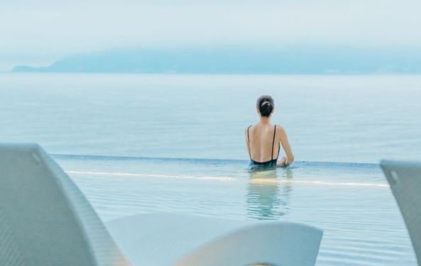 여수의 일출과 구름 사이로 해가 저무는 멋진 일몰까지 인피니티 풀 안에서 수영하며 즐길 수 있어서 많은 사람들에게 사진 촬영 장소로도 인기가 많다.