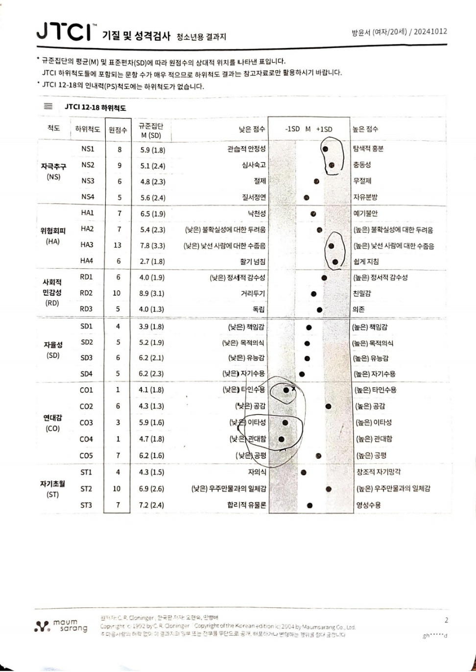 JTCI 성격 검사지 결과 및 마지막 동반자 상담 ; 상담의 끝을 맺으며