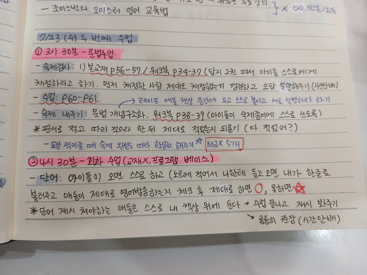 부모님의 가르침 덕분이다. 말로도 행동으로도 몸소 보여준 덕분이다. 우리에게 아낌없이 투자해 주시는 게 당연한 게 아니고 감사해야 한다는 걸 머리로만 아는 게 아니라 몸소 느끼게 된 건 성인이 되고 나서였다. 좀 늦게 철이 든 것일 수도 있거나 그냥 앞만 보느라 잊고 살았던 게 분명하다. 그냥 우리만 바라봐도 행복해하는 부모님의 미소가 눈에 들어왔을 때는 오히려 마음이 더 무거워졌다. 엄마한테 받은 술잔이 무거웠고, 술이 썼다. 눈물이 날 것만 같았다. 아빠는 이제 슬슬 나를 경제적으로 더 독립시키기 위해서 알바를 하는 동안 카드 지출을 제한하셨고, 나는 기꺼이 동의했다. 그러면서도 어느 정도는 아직 그들에게 기대야 하는 나 자신이 답답했다. 하지만 이렇게라도 천천히 나아가는 게 다행이라고 생각했다. 그만큼 제대로 된 경제적 자립이자, 나의 성장의 새로운 발판인 어학원 보조 강사 자리는 내게 무척이나 소중한 존재다. 두 번째 수업에 관한 내용을 전달받기 전에 미리 스스로 준비를 하기로 했다. 그래서 선택한 두 권의 책은 바로 '조이스박의 오이스터 영어 교육법', '바나나쌤의 한 달 완성 영문법'. 나는 최근 초등학생들을 대상으로 회화와 문법을 가르치고 있다. 그래서 이분들의 지식이 꼭 필요했다. 그중 바나나쌤은 교육에 있어서 나의 롤모델이었다. 물론 원장선생님도 포함되지만, 나는 그분의 유튜브 채널에 들어가 문법 강의를 한 바퀴 다 듣기 시작했다.