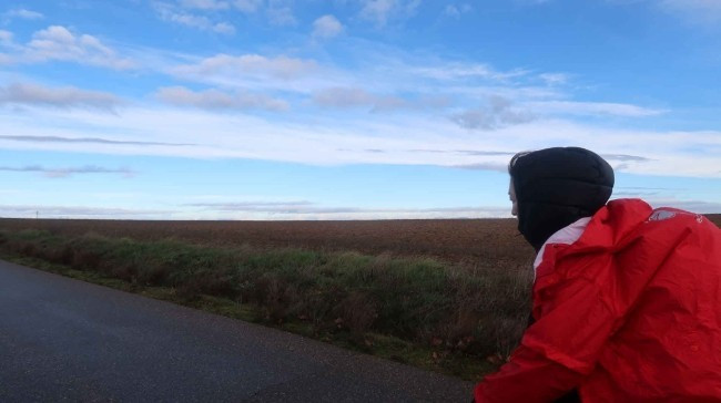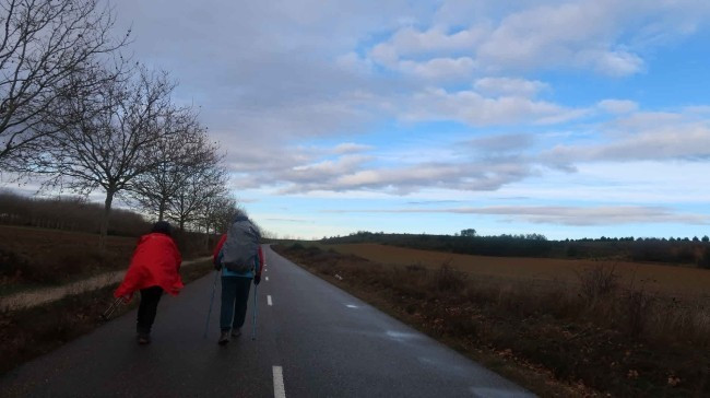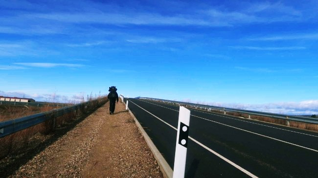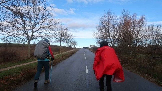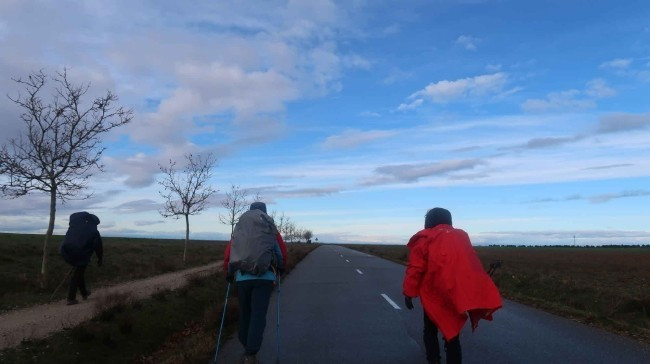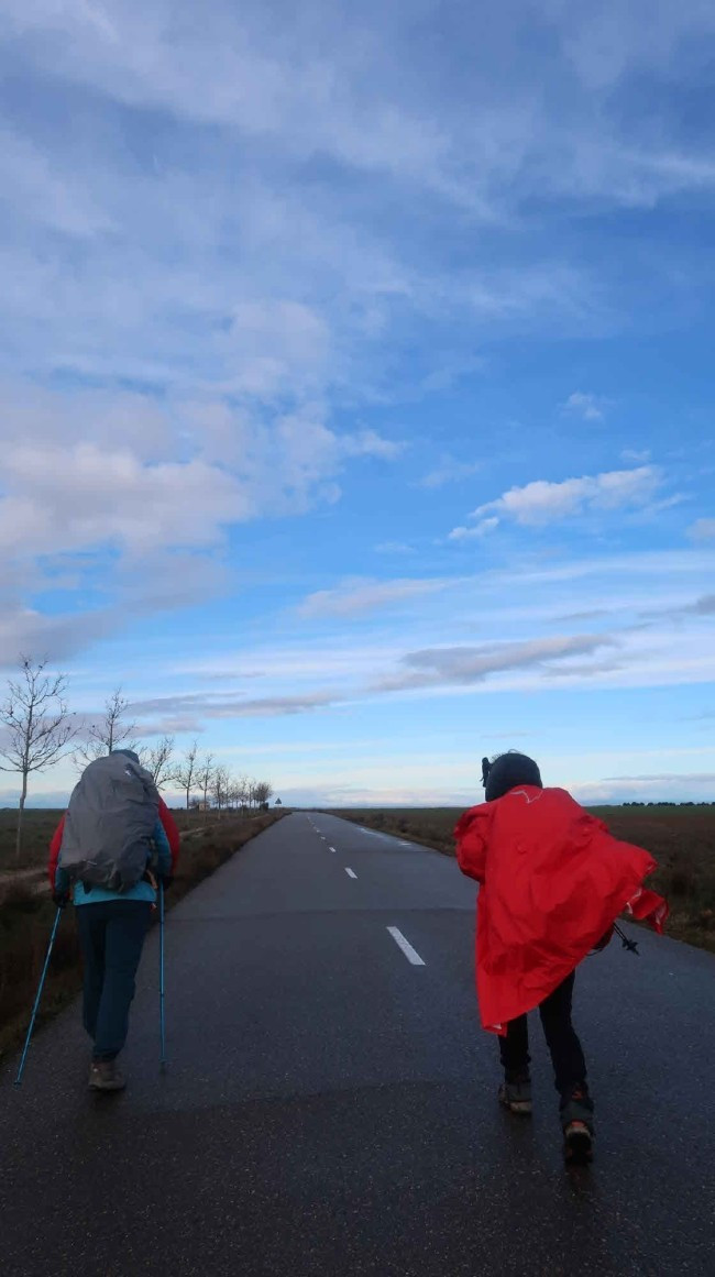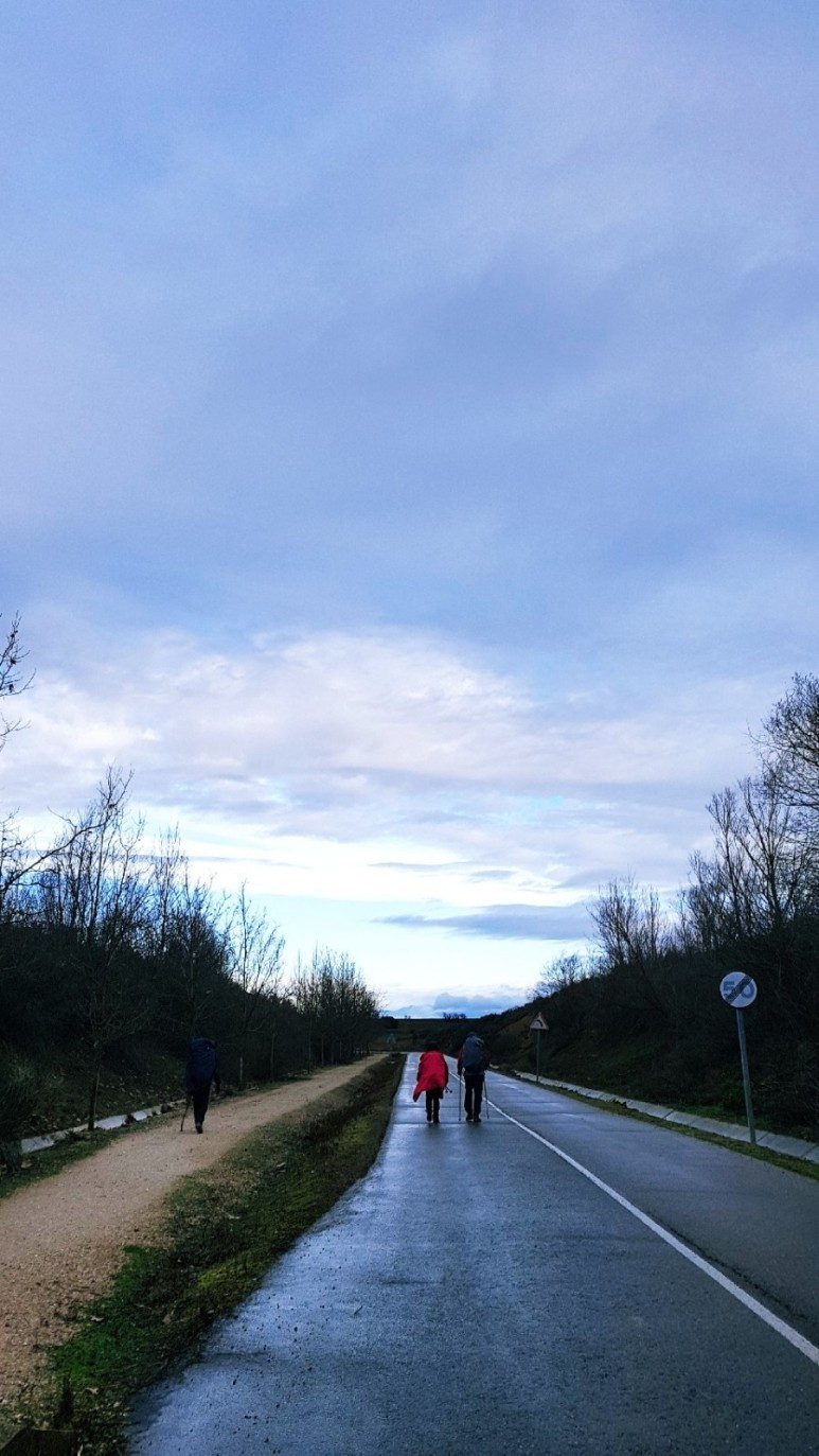 순례길은 옆에 보시는 흙길이지만 이른 아침에. 농사도 아직 짓기 전이라 작은 도로로 걸었습니다. 사진에서는 표현이 안됐지만. 이곳은 비가 내리다가 날씨가 맑아지면. 그 순간에 바람이 강하게 부는 경향이 있는 듯싶습니다