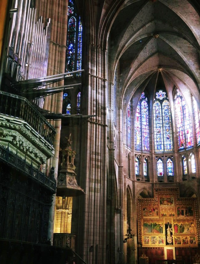 레온 대성당은 매우 웅장한 모습이지만 그것보다 더 유명한 것은 내부 전체를 화려하게 장식한 유리화다. 이 유리화는 스페인에서 가장 아름다운 것으로 평가된다. 유리화에는 성경 장면이나 성인의 일화, 신화에 나오는 야수나 식물의 문양 등 다양한 내용이 담겨 있다. 유리화의 주제뿐 아니라 표현 양식도 다양한데, 이것은 모든 유리화가 13세기부터 20세기까지 오랜 세월에 걸쳐 제작됐기 때문이다. (카톨릭 신문. 2018.5.16)
