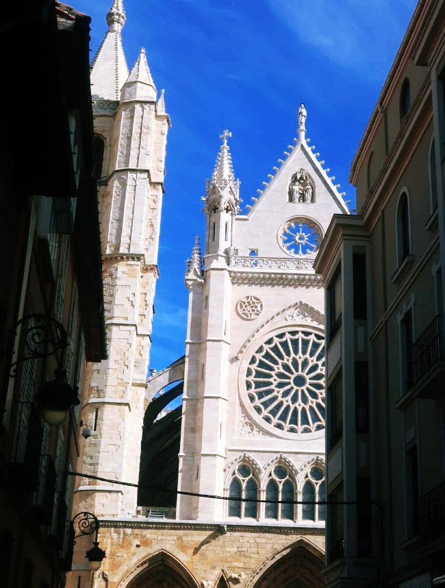 레온 한가운데는 주교좌성당 역할을 하는 대성당이 우뚝 서 있다. 성모 마리아를 주보로 모신 이 성당은 스페인 고딕 양식의 걸작으로 평가된다. 지금의 대성당은 2세기 경 로마 시대의 커다란 목욕탕이 있던 자리에 건립됐다. 이곳에는 로마네스크 양식의 성당이 있었는데, 그 건물을 허물고 새 성당 건립 공사를 했다. 1205년에 공사를 시작해 1301년에 성당의 주요 부분을 완성했고, 그 후에도 나머지 공사는 계속 진행했다. 성당의 평면은 라틴십자가 형태이며 길이는 90m, 폭은 40m에 이른다.
