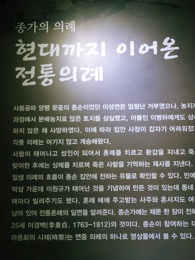 사진. 양평 친환경농업박물관 .원주이씨 특별전