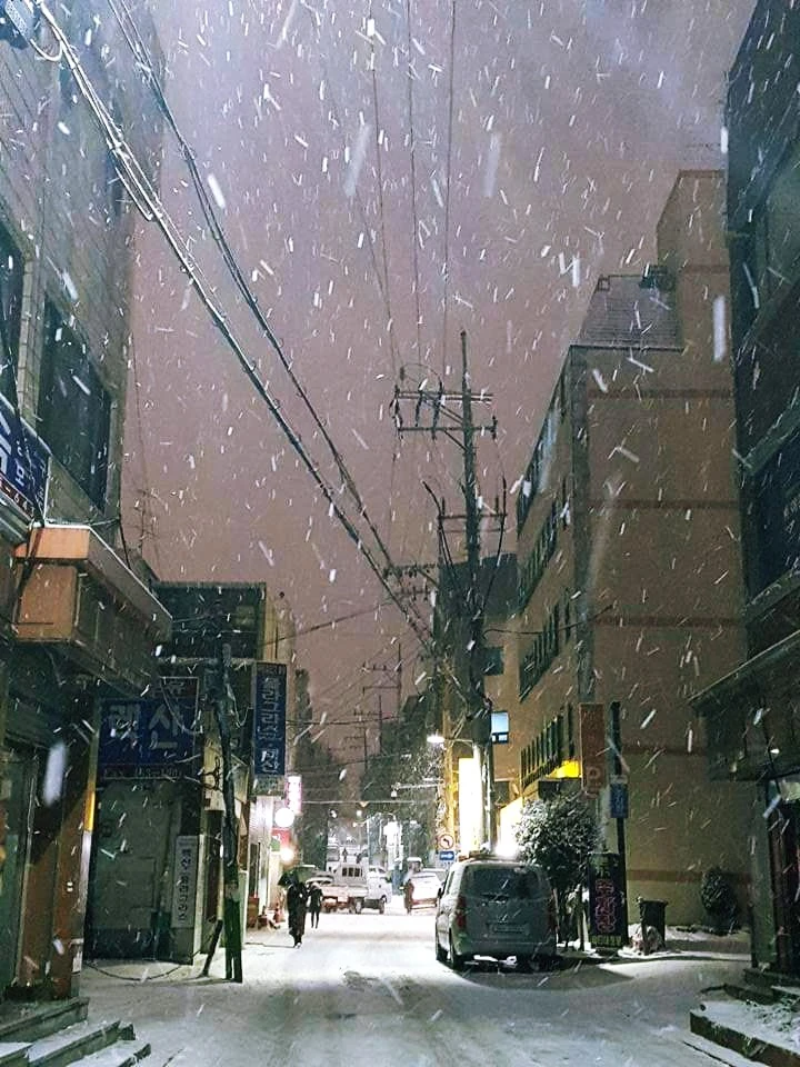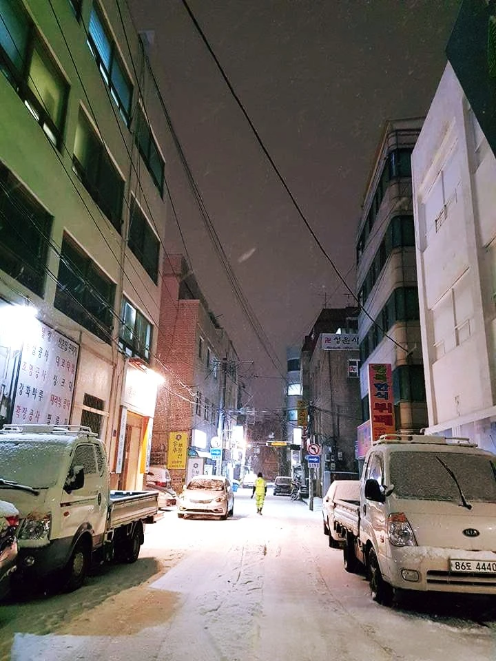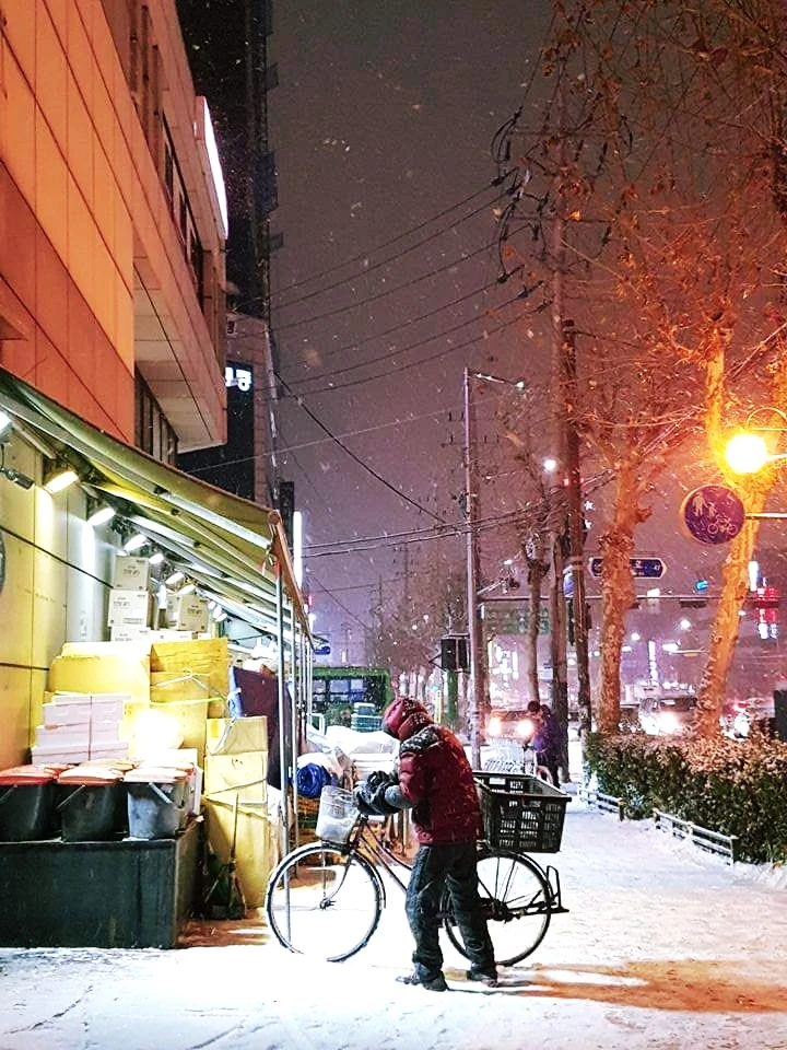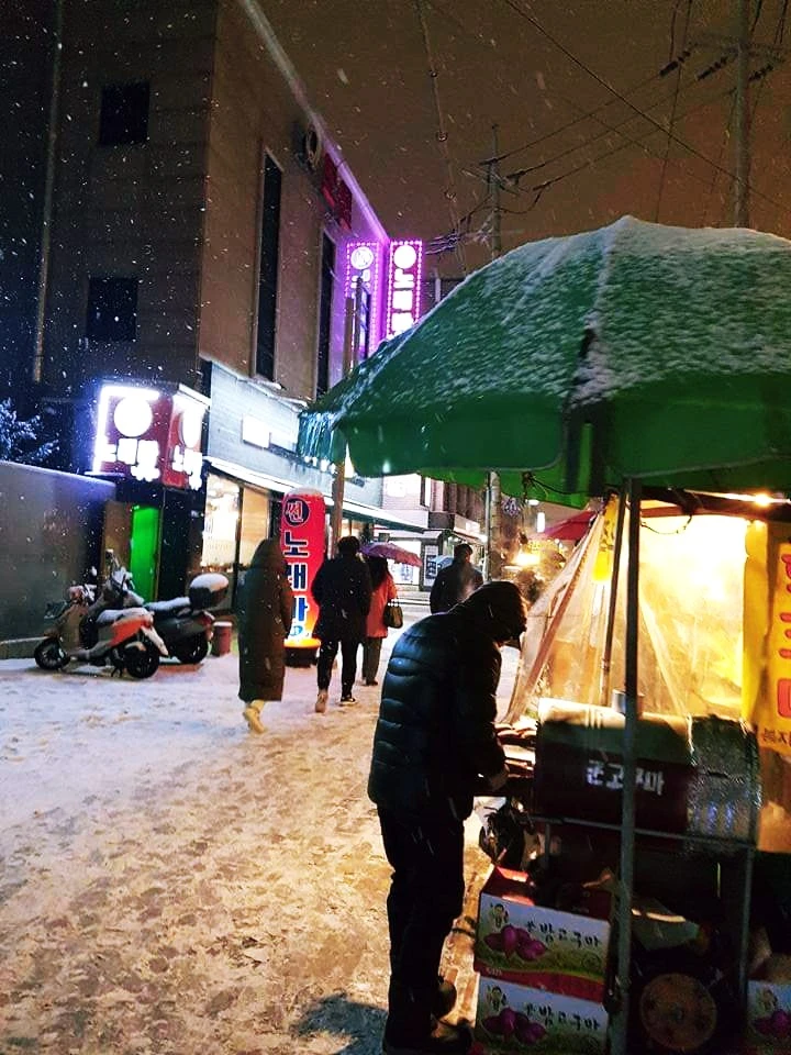 자기 주인이 있는 식당을 바라볼 때 찍은 사진이다