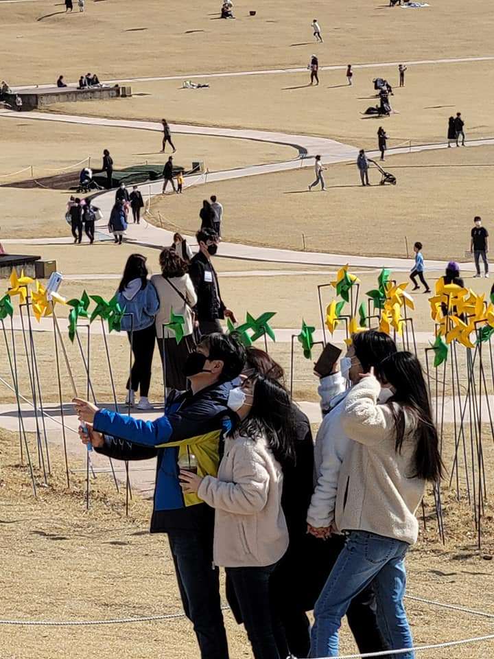 정말 오후 늦게 찾은 파주 바람의 언덕에는 코로나 맞나? 싶을 정도로 사람들로 가득 넘쳐 났다. 다른 게 있다면 마스크와 자발적 거리 두기를 둔다는 점 빼고는 예년과 다를까 없었다