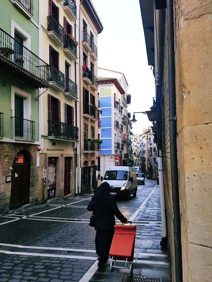 팜플로나 시내 풍경입니다. 유럽여행은 다녀봤지만, 1-2번이라 도시를 가로질러 걸으니 좀 다른 느낌 이랄까요? 예를 들어, 지방의 작은 도시를 처음에서 끝까지 걸은 거니까요. 그것도 그들이 살고 있는 주거 지를 포함해서. 우리의 여행이라고 하면 여행 중심지를 벗어나기 힘든데. 그들의 일상 속에서 저는 배낭을 메고서 터벅터벅 걷는 순례자 신분이니 그런 기분도 묘했고요. 그래도 몇 번 길을 잃었는데. 그때마다 수호 성인이 등장하셔서. 바른 길을 안내해 주시곤 했습니다.
