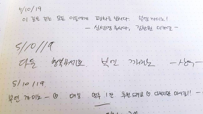 이 길을 걷는 모든 이들에게 평화를 빕니다. 다들 행복하세요.