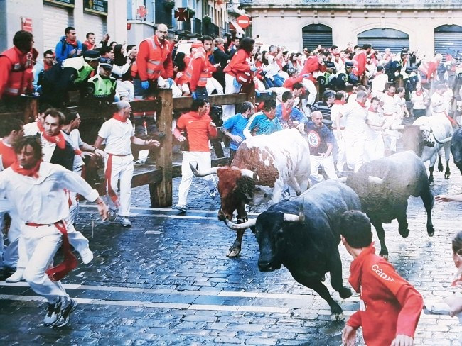 이곳은 산 페르민 소몰이 축제로 유명한 팜플로나 입니다 (*스페인 팜플로나 수호성인 '산페르민'을 기리기 위해 해마다 여는 축제) 원래는 순례길 과정 에서 이곳을 1박으로 하는 것을 목표로 움직입니다. 순례길 걷고 나서 첫 번째로 만나는 도시이기 때문에. 이곳에서 휴식을 취하면서 장비를 점검하고 (이곳 데카트론 매장에서 뒤늦게 스틱을 사시는 분들도 많 습니다) 오랜만에 맛집에서 음식도 푸짐하게 먹고요