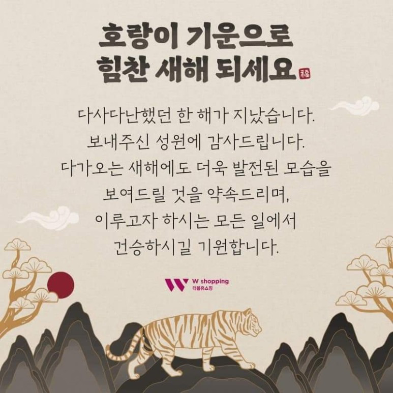 아무쪼록 호랑이의 힘찬 기운을 받아 뒤돌아보지 않고 전진하는 한 해가 되었으면 좋겠습니다