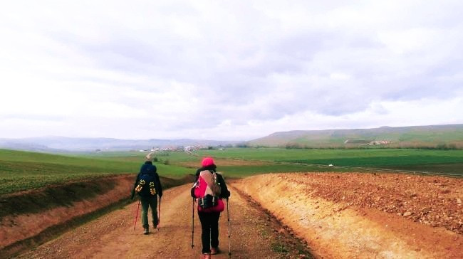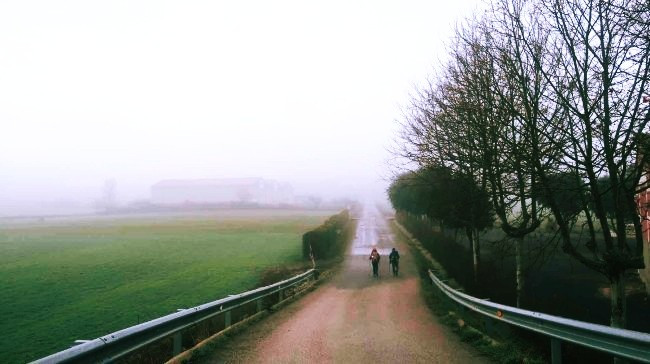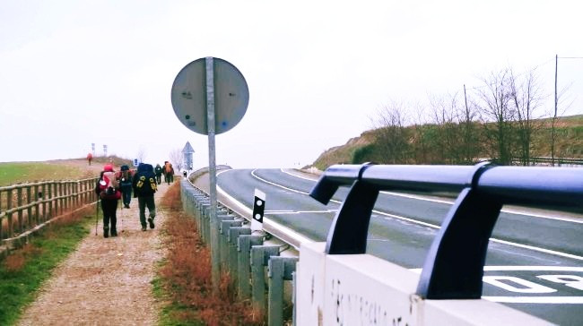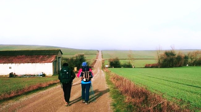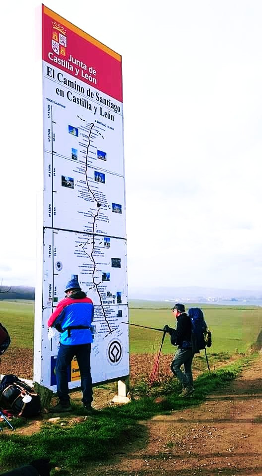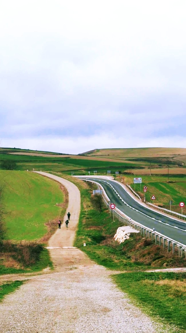 A. 어제처럼 비가 오는 날씨가 아니고. 코스도 24km에 부르고스 까지 가는 도로 N-120을 따라 걷는 코스 라 출발은 순조로왔습니다. 하지만. 후반부에 강력한 스페인 맞바람을 만나면서 걷는 것이 힘들 정도로 걷는데 다소 불편했습니다. 이미 같이 움직이는 일행 8명 중 2명은 물집이 잡혀 고생 중이고요. 다른 2명도 처음 맞는 강행군에 힘듦을 호소 중입니다. 그래도 어르신. 과 군대 졸업한 대학생 2명 그리고. 회사 퇴직 후 처음 여행을 오셨다는 분은 쌩쌩합니다.
