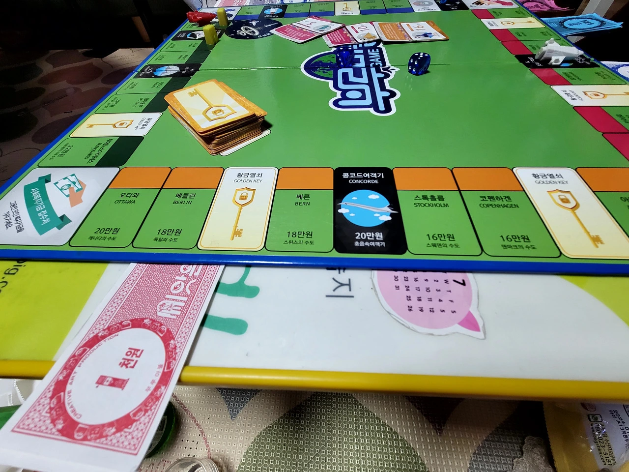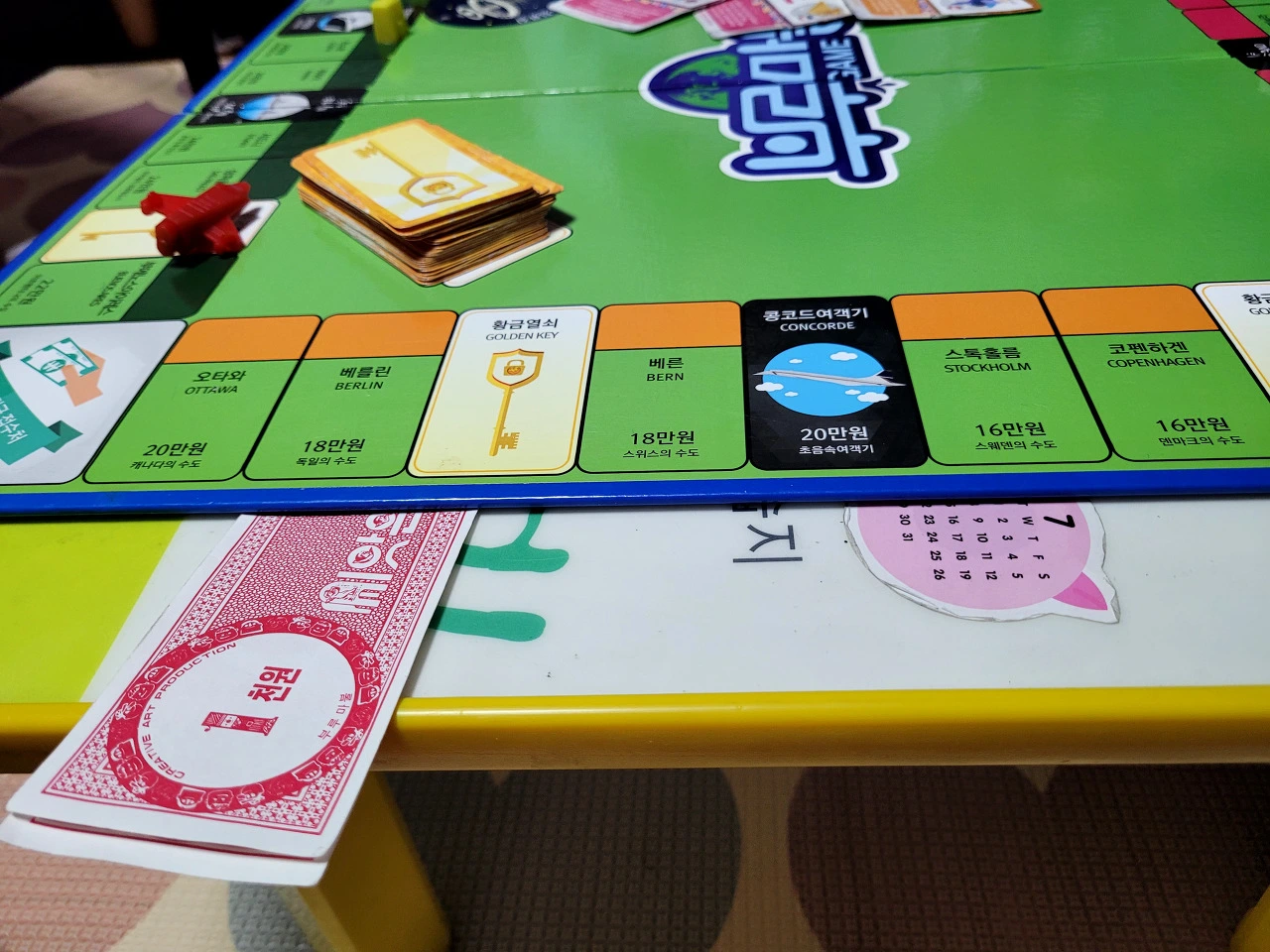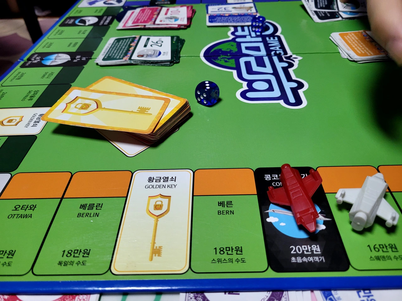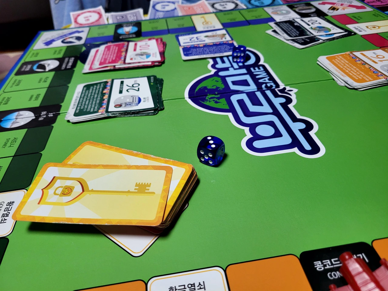 게임칸 중에는 황금열쇠가 있는 곳이 있습니다. 이 칸에 걸리면 황금열쇠 카드를 하나 뽑고 그 지시에 따라야 합니다.